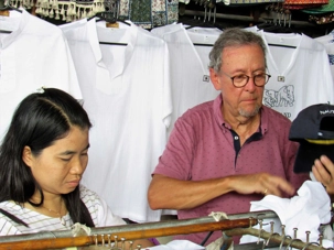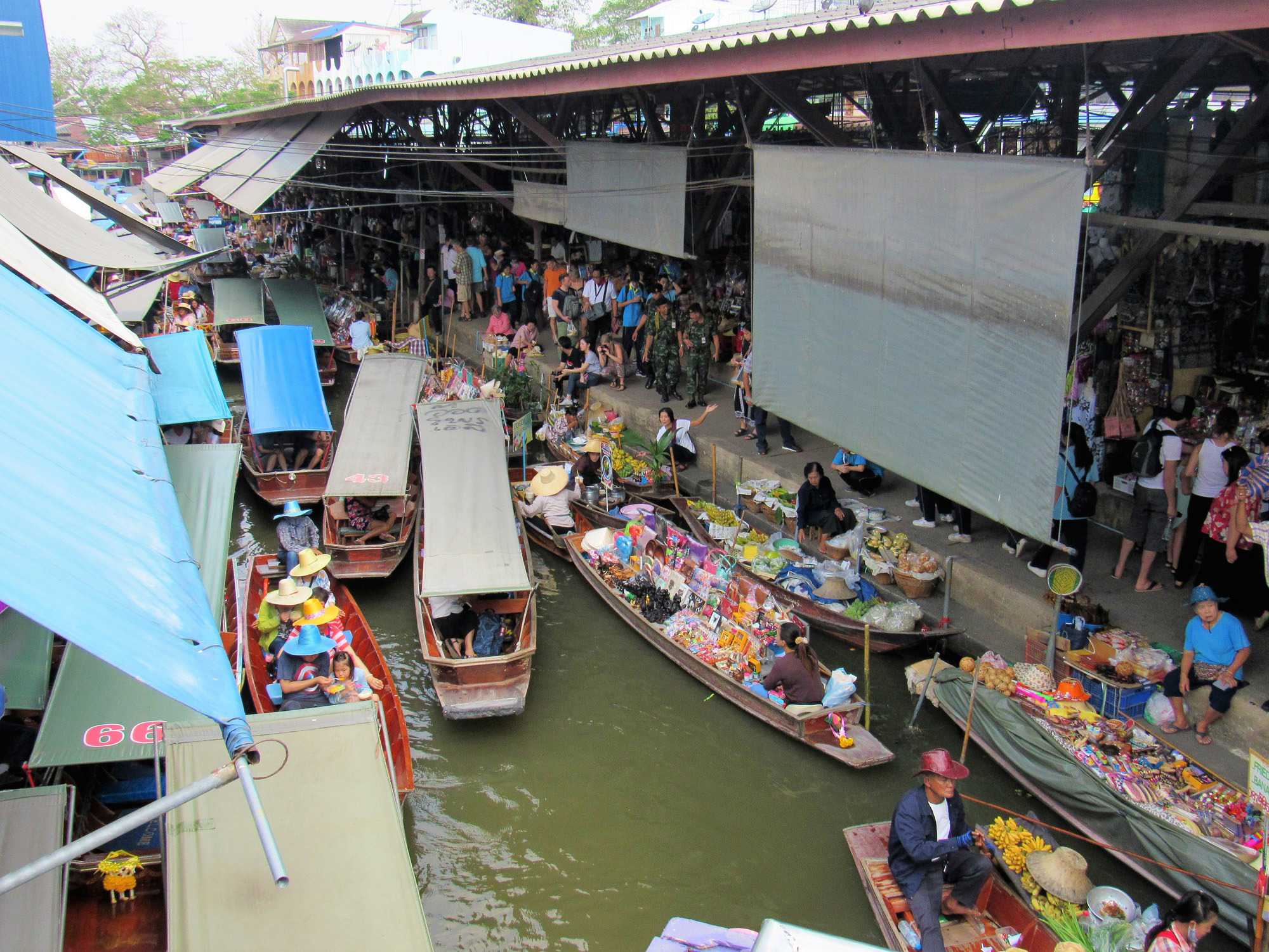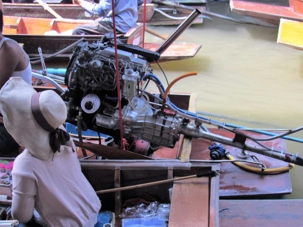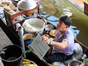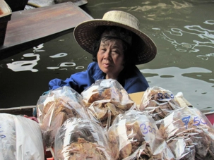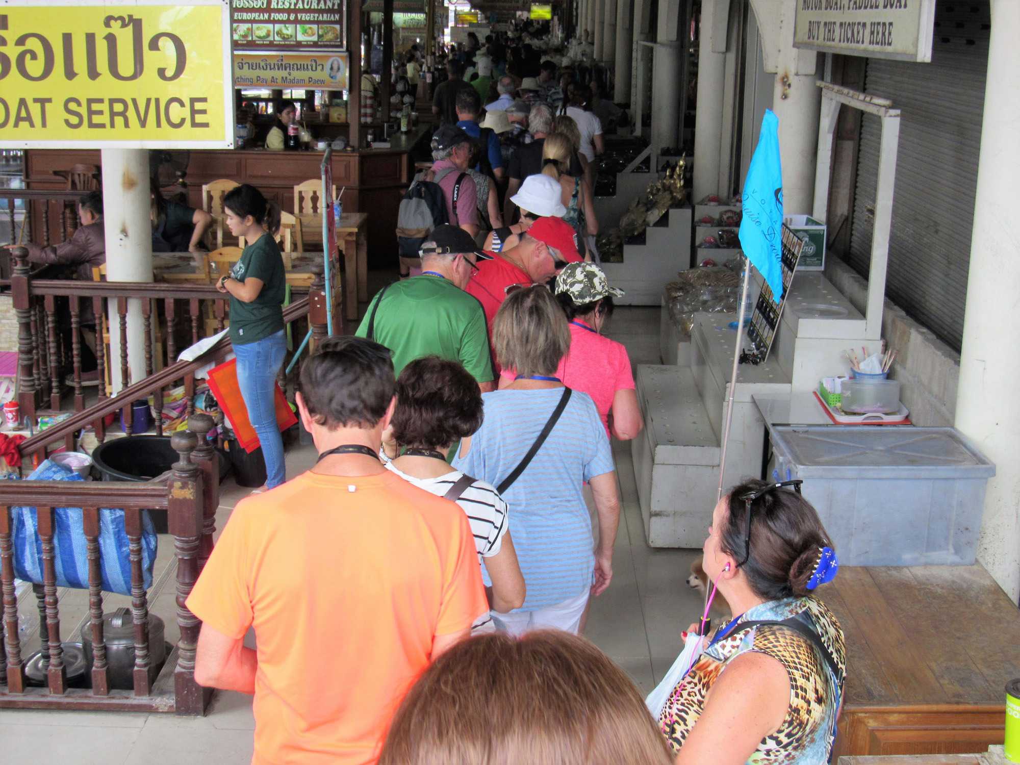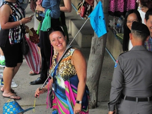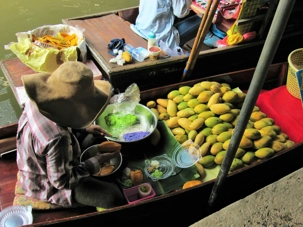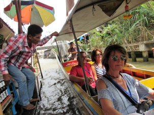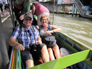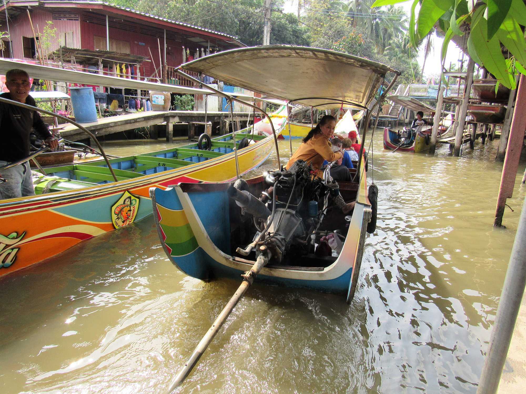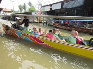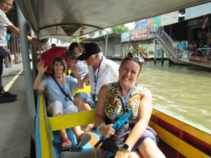 Le soleil est au rendez-vous, il fait très chaud même si Supot, notre guide, nous dit que c’est l’hiver… Nous avions entendu la même chose à Bali. Il fait déjà, à cette heure, 24 degrés mais c’est aussi très humide. Mon groupe est vraiment de bonne humeur même si on s’est levés tôt, nous sommes tous prêts à partir. Après les formalités d’entrée en Thaïlande qui nous ont pris un peu plus de temps que prévu nous pouvons quitter le port vers 7h45 direction du marché flottant.