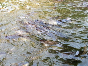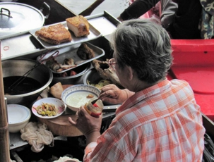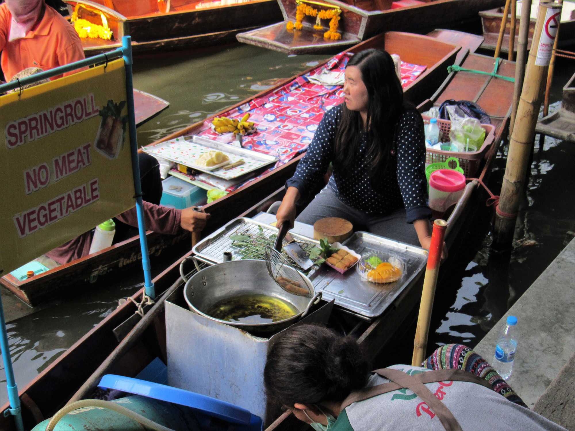 On poursuit notre périple sur les canaux puis, nous faisons un arrêt devant un temple en bordure du canal, pour nourrir des poissons sacrés. Les temples même ceux en bordure du canal sont très beaux, que d'accomplissements et de dévouement envers les dieux.
