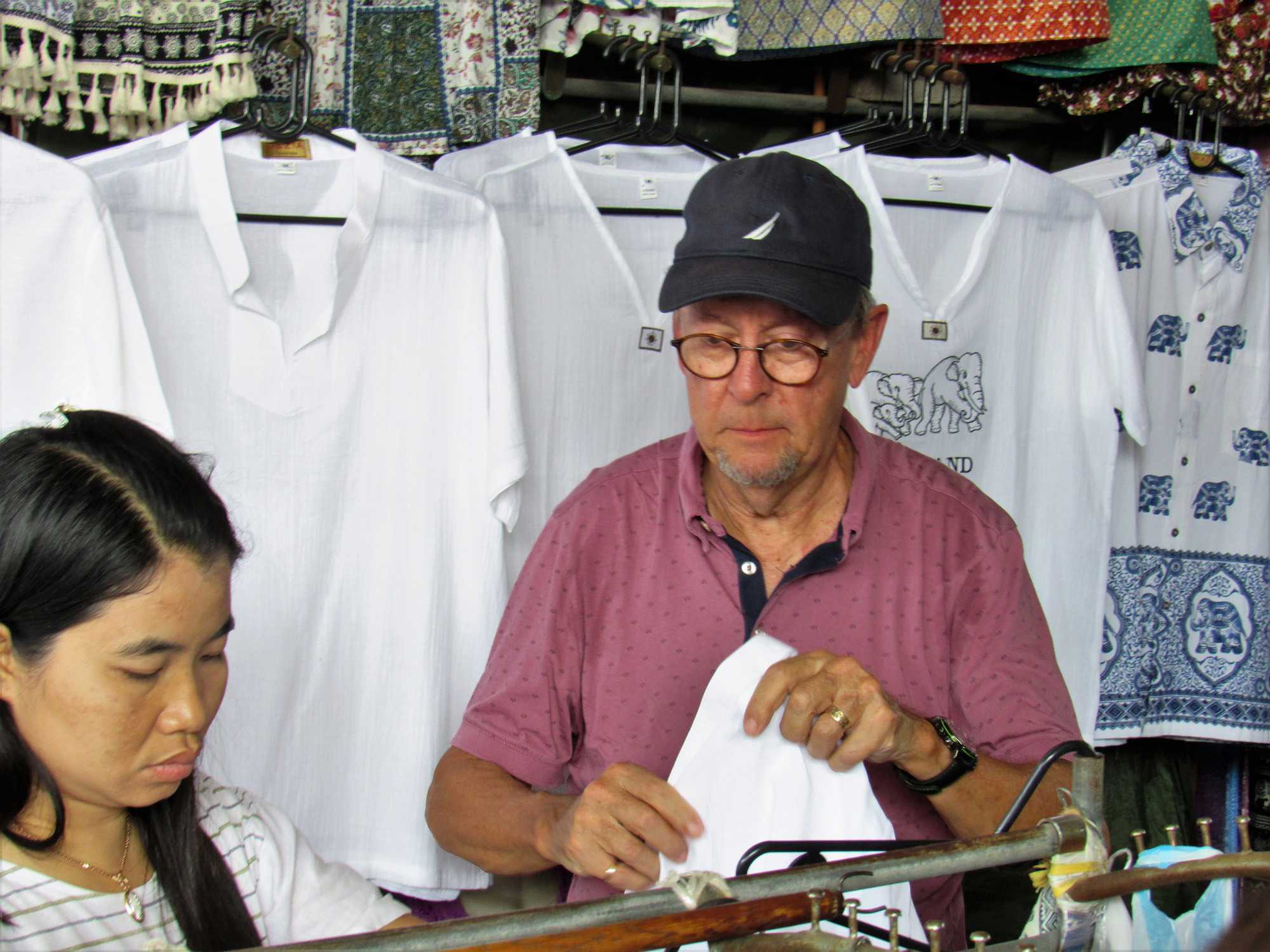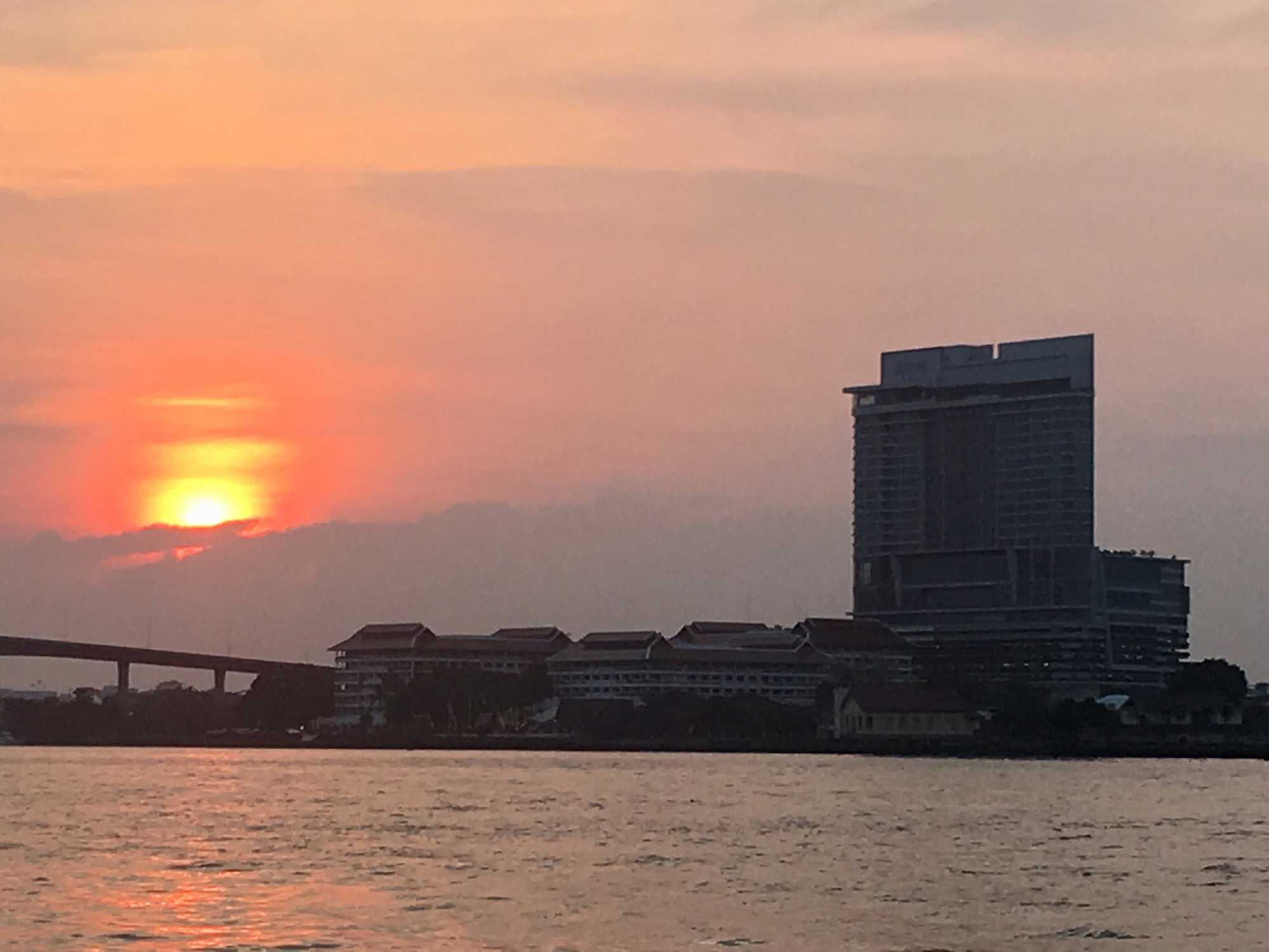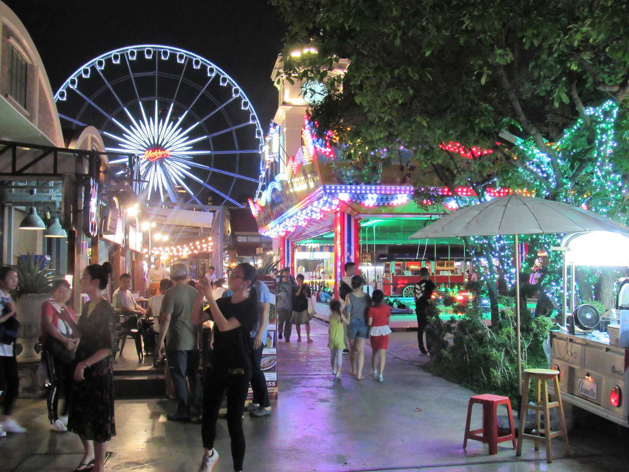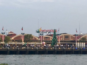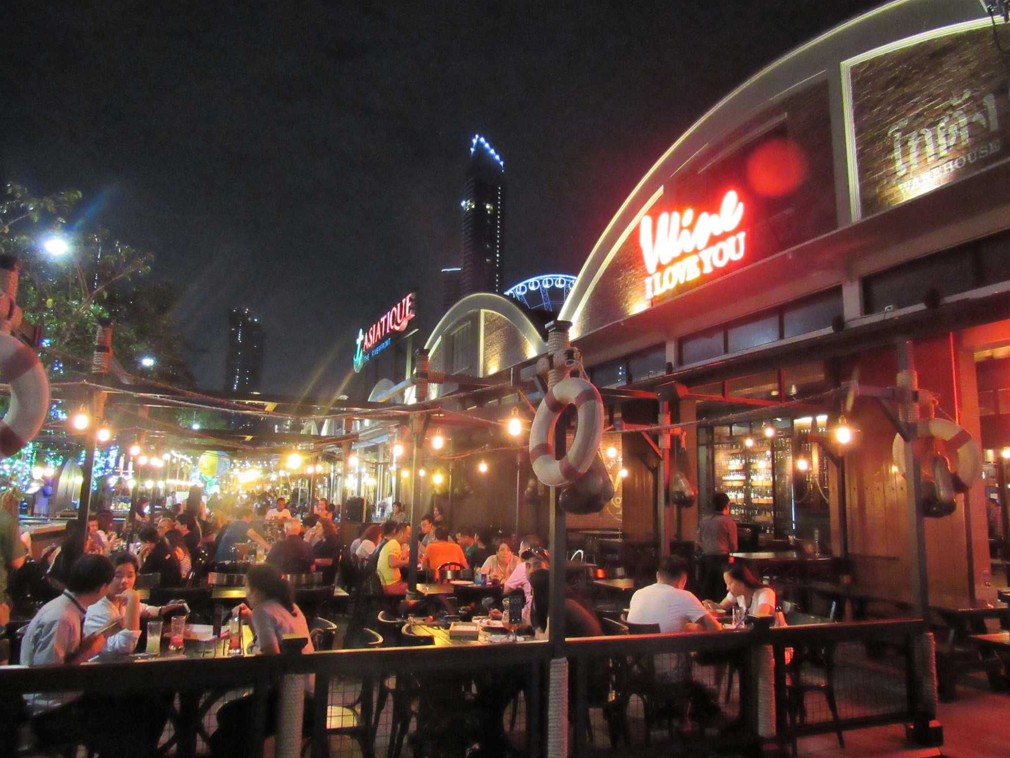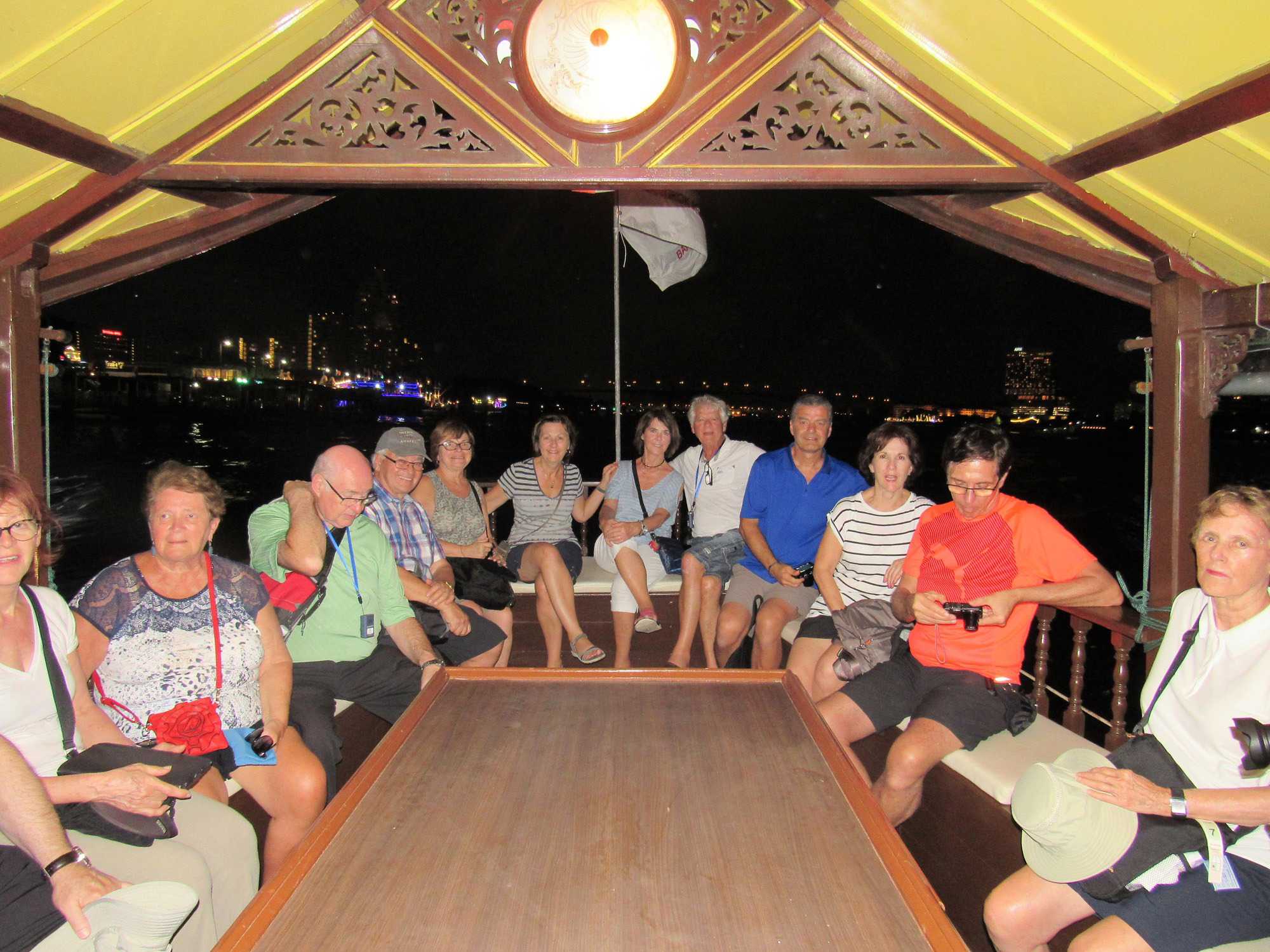 Notre aventure ne se termine pas là. Nous nous dirigeons vers Asiatique, un ancien hangar transformé en marché de nuit. Quelques achats vite faits, bien faits et départ vers le restaurant de l’hôtel Maé Nam, un restaurant international. Le repas est vraiment très bien et nous avons le privilège de manger à l’extérieur sur la terrasse en admirant les lumières de la ville de Bangkok, une superbe soirée qui se termine en reprenant la route vers le port maritime. Malgré la fatigue nous sommes très heureux de cette belle journée avec un super guide que j’apprécie énormément. Supot et sa famille sont pour moi très importants. On se connaît depuis plus d’une vingtaine d’années.