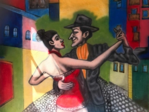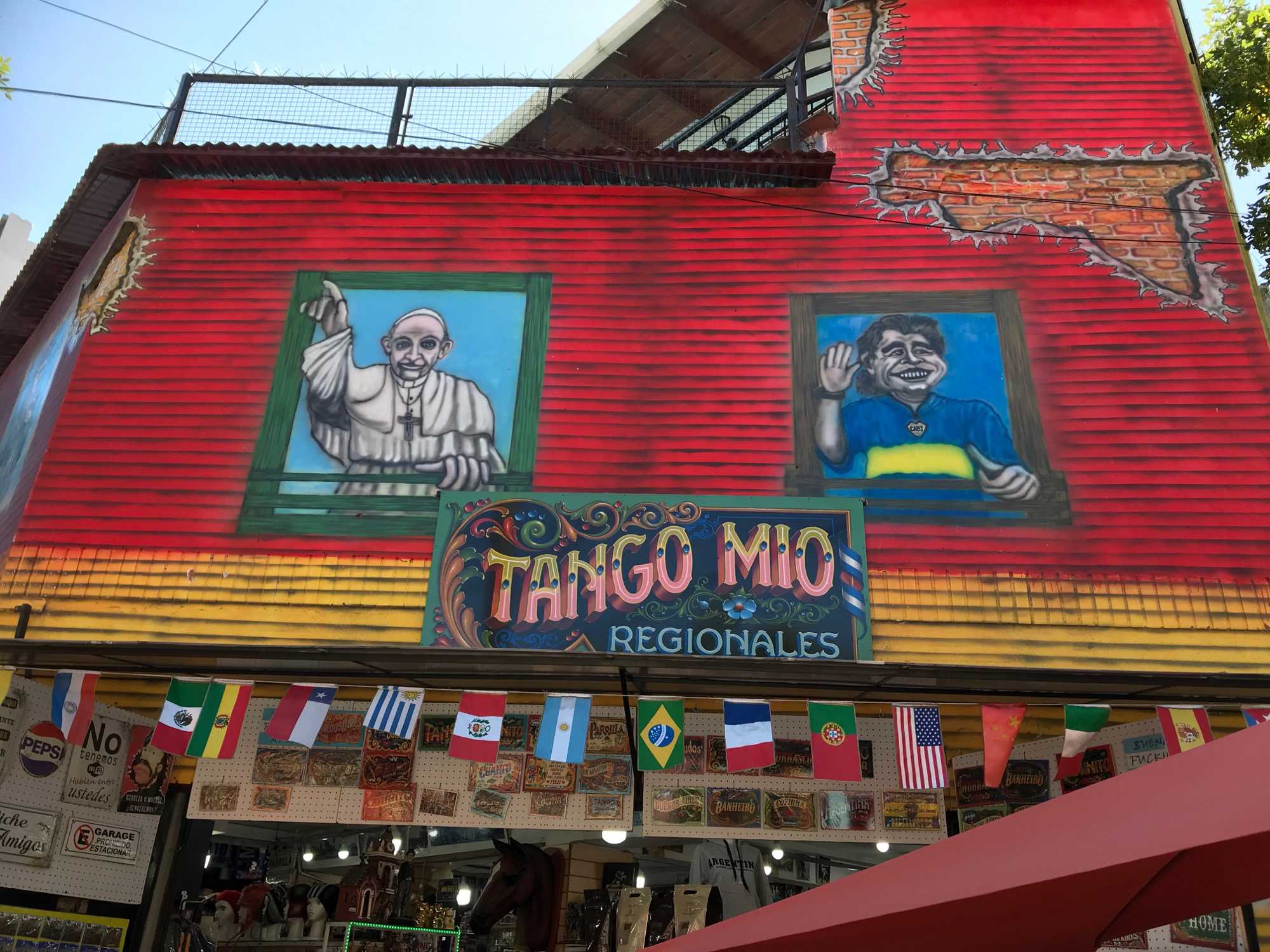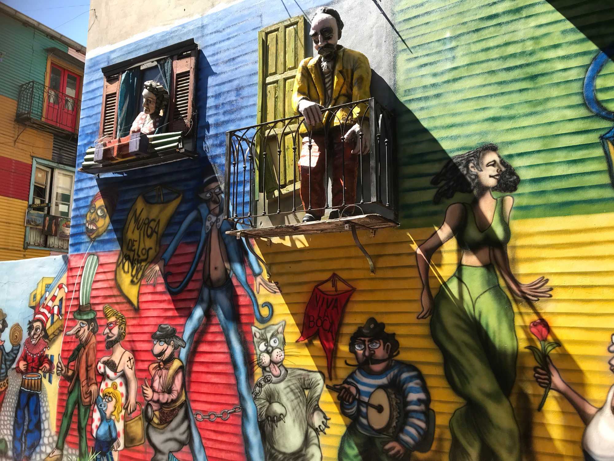 Puis, on se dirige vers le fameux quartier de La Boca. Réputé pour ses maisons en tôle multicolores et ses origines italiennes, ses couleurs vives, ses danseurs de tango dans la rue et ses artistes peintres dont les oeuvres sont exposées en plein air, ce quartier ne demande qu’à être exploré. Jouissant d'une ambiance propre aux zones portuaires, la Boca et ses rues pavées est aussi le chef-lieu du mythique stade de la Bombonera. Aujourd'hui, ce quartier populaire à l'atmosphère bohème, est le théâtre permanent de scènes typiques où se croisent touristes et orchestres de rue. Personnellement, j’adore ce quartier où on peut voir des danseurs de tango dans la rue, et où il y a beaucoup d’animation. On prend donc le temps de s’imprégner de cette joyeuse atmosphère.