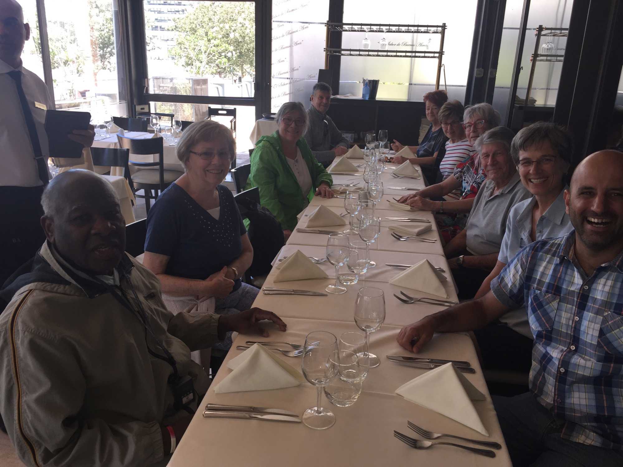Notre passage aux douanes a été assez long: il y avait toute une file d'attente! Nous avons patienté et jasé en même temps et voilà qu'après 1h30, nous y passons. Notre guide nous a expliqué que les douaniers font un genre de grève du zèle en prenant soin de prendre bien leur temps avec chaque personne. Mais au moins, on n'a pas eu à attendre nos valises! Elles nous attendaient bien sagement sur le carrousel. En deux trois mouvements, Esteban et moi avons ré-organisé notre horaire. On se rend d'abord à l'hôtel où on fait notre enregistrement rapide et on se rend ensuite à notre restaurant, Le Gourmet Porteño, qui est tout près. On fait un premier toast à notre beau voyage si bien commencé. Un buffet avec de tout: salades, viandes froides, viandes grillées, poissons, sushis, et ... délicieux desserts! J'ai pu constater que j'avais de la compétition avec Esteban et Gisèle dans ce domaine!