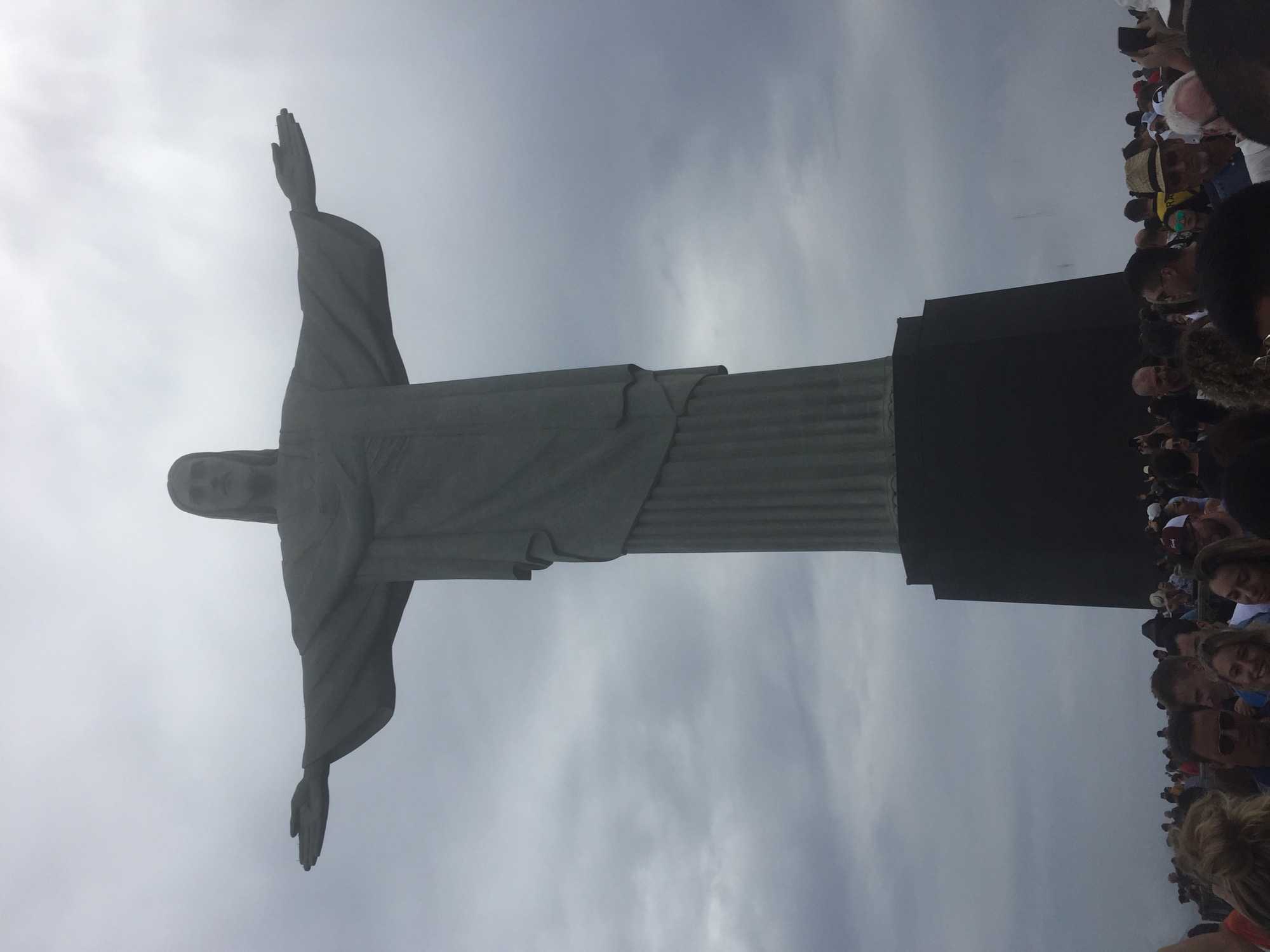 Nous poursuivons notre visite de la ville par le fameux Corcovado. La célèbre statue du Christ Rédempteur, bras en croix, se dresse sur le pic du Corcovado d'une hauteur de 710 mètres et que l'on peut apercevoir de tous les quartiers de Rio. La statue mesure 38 mètres de haut. De simple monument religieux à ses débuts, elle est devenue au fil des ans un des emblèmes reconnus internationalement de la ville. L'oeuvre date de 1931. En 2007, la statue du Christ Rédempteur a été choisie comme l'une des Sept nouvelles merveilles du monde par des internautes allant voter sur un site web indépendant et par téléphone. Ce monument en pierre de savon qui surplombe la ville tel un phare la nuit est un des plus beaux exemples de l'Art Nouveau carioca. Les vues à en couper le souffle sur les plages de Copacabana, Ipanema, Leblon, les jardins botaniques et le lac Rodrigo de Freitas, entre autres, nous permettent de mieux comprendre cette métropole à la topographie si particulière. Il y a beaucoup de monde mais on y monte sans attente. Nous sommes bien chanceux. Et encore plus chanceux d'avoir pu voir la statue et le paysage sans nuages. Car ce monument peut être dans les nuages une semaine de tant sans problème!