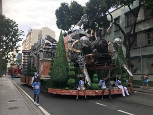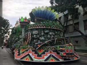 Ce matin, c’est avec un beau soleil resplendissant que nous poursuivons notre visite de Rio. Nous repartons en excursion avec notre guide Mauro pour une ballade en bateau dans la baie de Guanabara. Puisqu’il y a beaucoup de rues fermées à cause du carnaval, nous attendons un peu notre minibus. Heureusement, car ça nous donne la chance de voir les chars allégoriques de la parade d’hier passer devant nous dans la rue! C’est très drôle de voir ces mastodontes se promener dans les rues de la ville et nous sommes aux premières loges!