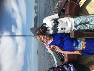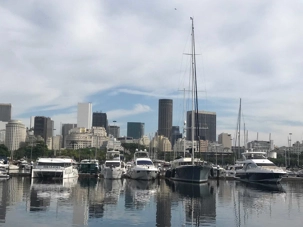 Bon, on se rend au port de plaisance de la ville où nous avons le bonheur d’embarquer sur une goélette. Le temps est parfait pour nous. C’est chaud, avec un ressenti de 37 degrés au soleil. Mais sur le bateau, nous avons un bon vent rafraichissant. C’est le bonheur! La baie de Guanabara est la deuxième plus grande baie se trouvant au Brésil, la végétation dense de ses côtes était autrefois habitée par des tribus indiennes. Nous embarquons sur une goélette qui nous permettra d ́admirer les vues époustouflantes de la côte de Rio. Nous passons devant les deux forts des XVIIe et XIXe siècles contemplant l’entrée de la baie. Nous avons aussi vu l’extraordinaire musée d’Art Contemporain, conçu par Oscar Niemeyer, abritant les peintures et les sculptures des principaux collectionneurs d’art moderne brésilien. Les autres sites que nous avons pu admirer incluent le pont du fleuve Niteroi, qui enjambe la baie et l’île fiscale et son palais néo-gothique de couleur verte, oeuvre d’Adolfo Del Vecchio. La baie de Guanabara est profonde de trente kilomètres. Il est facile de traverser la baie de Guanabara pour se rendre à Niterói ou dans les îles.