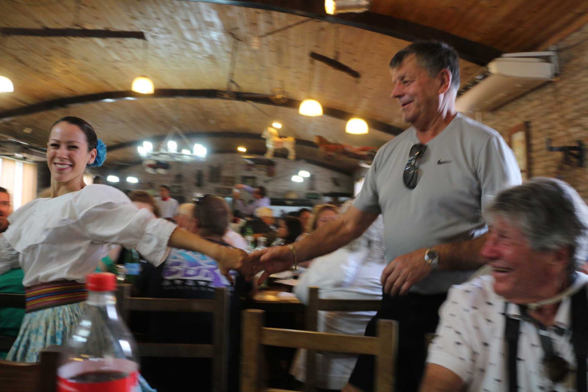 Le dîner, sous forme de barbecue, accompagné d’un spectacle de danses et chants folkloriques, a été servi dans leur salle de réception et c’était vraiment très agréable. Excellent spectacle! C’était très bon et bien arrosé de bons vins argentins. Comme le temps passe vite en agréable compagnie! Pour le reste de l’après-midi, tous en ont profité à leur guise. Avant de partir, nous avons pu voir un spectacle à cheval fait par quatre valeureux gauchos qui se sont bien amusés avec nous. Ils sont bien habiles ces cavaliers. Les photos vous montreront leur jeu réalisé pour nous.