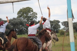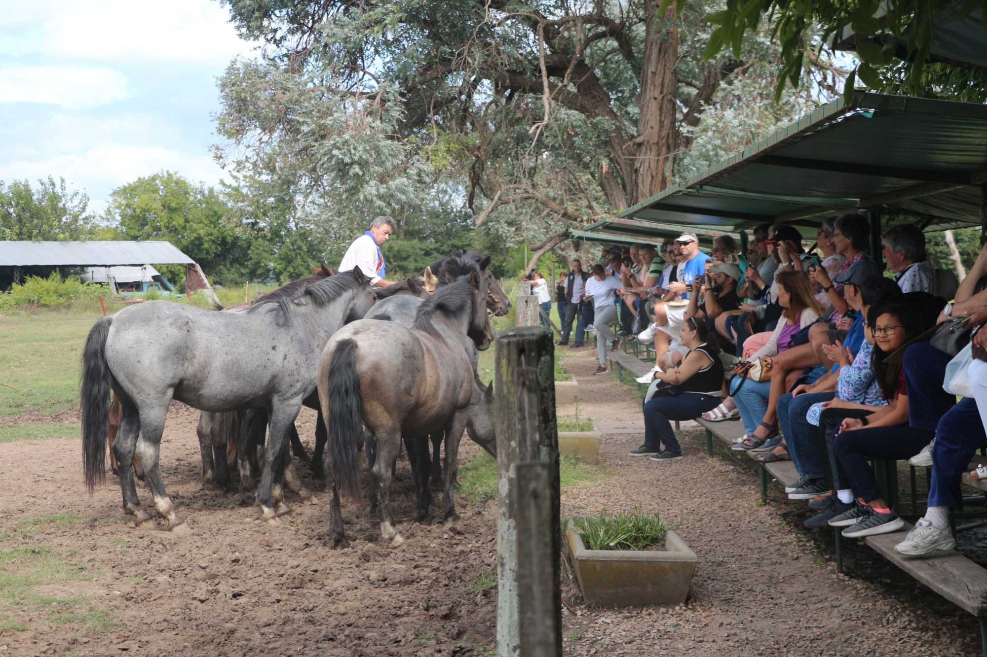 Puisque notre spectacle s’est terminé tard hier soir, nous n’étions pas trop pressés de nous glisser hors de notre lit ce matin. Après un bon petit déjeuner, nous voilà tous prêts à partir. Mabel nous rejoint et nous faisons environ 2h de route (avec trafic pour sortir de la ville) pour nous diriger vers une estancia, grande ferme typique, située à environ 80 km de Buenos Aires. Les estancias ont préservé les anciens espaces de vie, notamment de grandes maisons bourgeoises où vivaient les propriétaires, et possèdent de nombreuses annexes où s’organise la vie du domaine. Le terme « gaucho » désigne les anciens gardiens de troupeaux de la pampa sud-américaine. Si aujourd’hui les vrais gauchos n’existent plus, de nombreux habitants de la campagne ont conservé les us et coutumes gauchesques, notamment dans la façon de s’habiller.