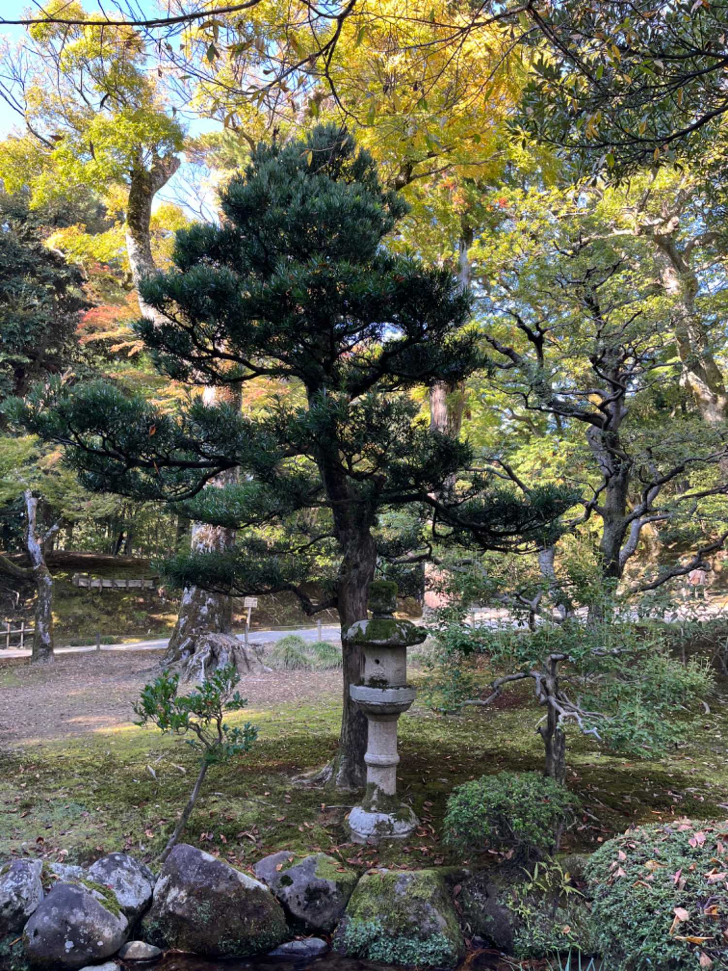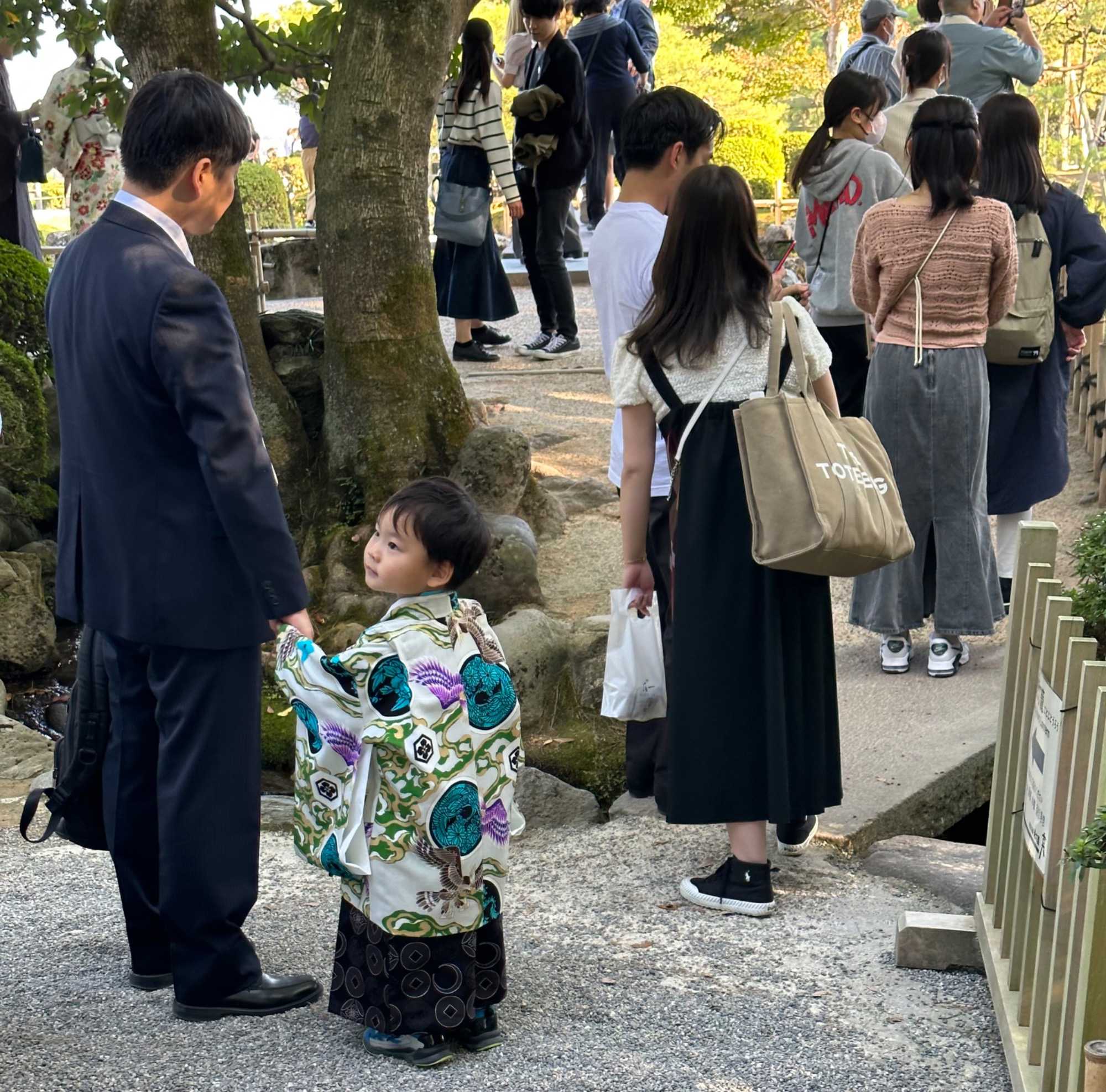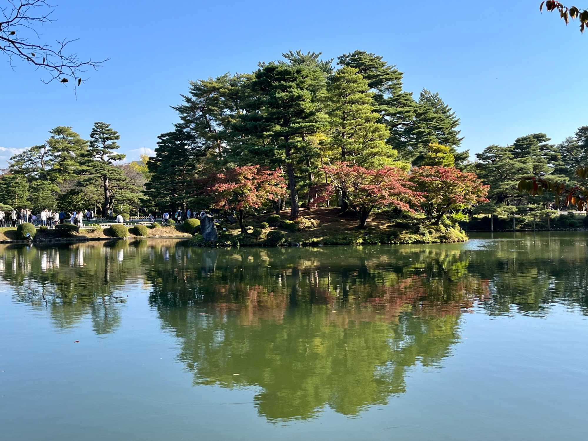 Après le dîner, nous offrons aux voyageurs du temps libre pour un peu de magasinage et pour retourner se promener dans le jardin Kenrokuen. Aujourd’hui, étant un jour férié, la Journée de la Culture à Kanazawa, l’entrée au jardin est libre, il nous est donc possible d’y revenir pour y poursuivre notre exploration. Plusieurs résidents en profitent aussi pour s’imprégner de cette belle nature en présence d’un soleil radieux ! Nous croisons des jeunes revêtus d’élégant Kimono et nous leur demandons pour les prendre en photo.
