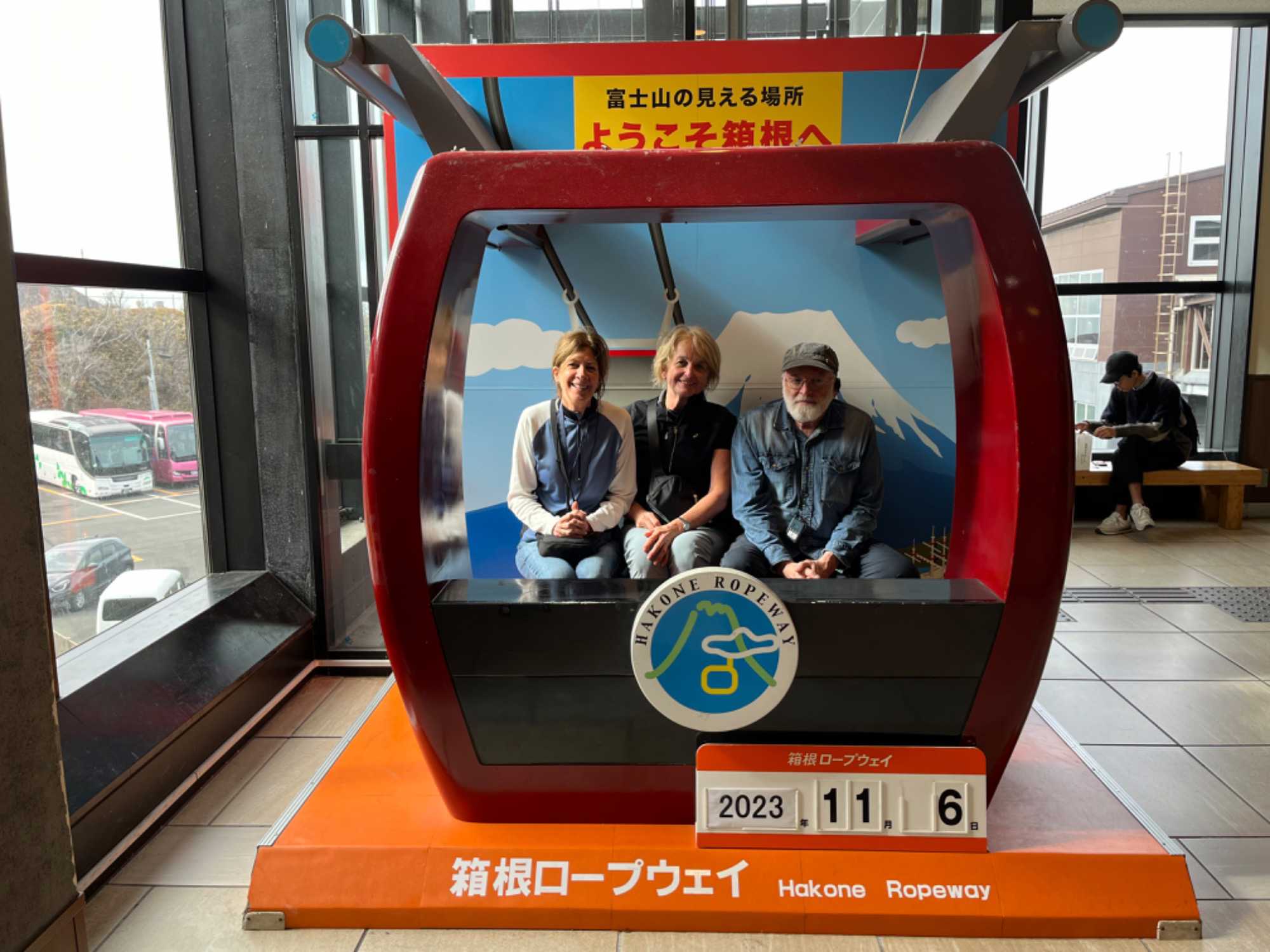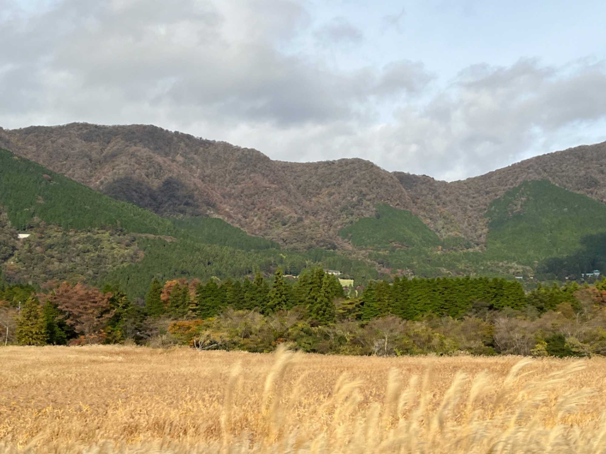 Arrivés au port, notre chauffeur nous attend et nous montons à bord de l’autobus pour aller découvrir la vallée d’Owakudani. Cette vallée volcanique est l’un des lieux à ne pas manquer de passage à Hakone ! Située sur les hauteurs du lac Ashi, les visiteurs s’y rendent autant pour les éruptions de souffre impressionnantes de ses sources chaudes naturelles que pour le magnifique panorama sur le légendaire mont Fuji. Fuji San, comme l’appellent les Japonais, est le plus haut sommet du Japon (3 776 mètres). De par son profil montagneux exceptionnellement symétrique, et de par sa forme conique, le Mont Fuji est devenu le principal symbole du Japon. C’est un stratovolcan (grand volcan conique formé par les coulées de lave durcie) faisant partie de la fameuse ceinture de feu du Pacifique. Il est toujours considéré actif et ce même si la dernière éruption remonte à 1707, donc plus de 300 ans. À sa base, se déploie une région de 5 lacs, plateaux, cascades et grottes offrant de beaux paysages naturels. Nous roulons en pleine campagne pendant un bon moment et on peut y voir plusieurs cultures de plants de théier. Tout au long de la route, nous contemplons le majestueux Mont Fuji. Comme nous le dit notre excellent guide, Jean, nous sommes chanceux de le voir.