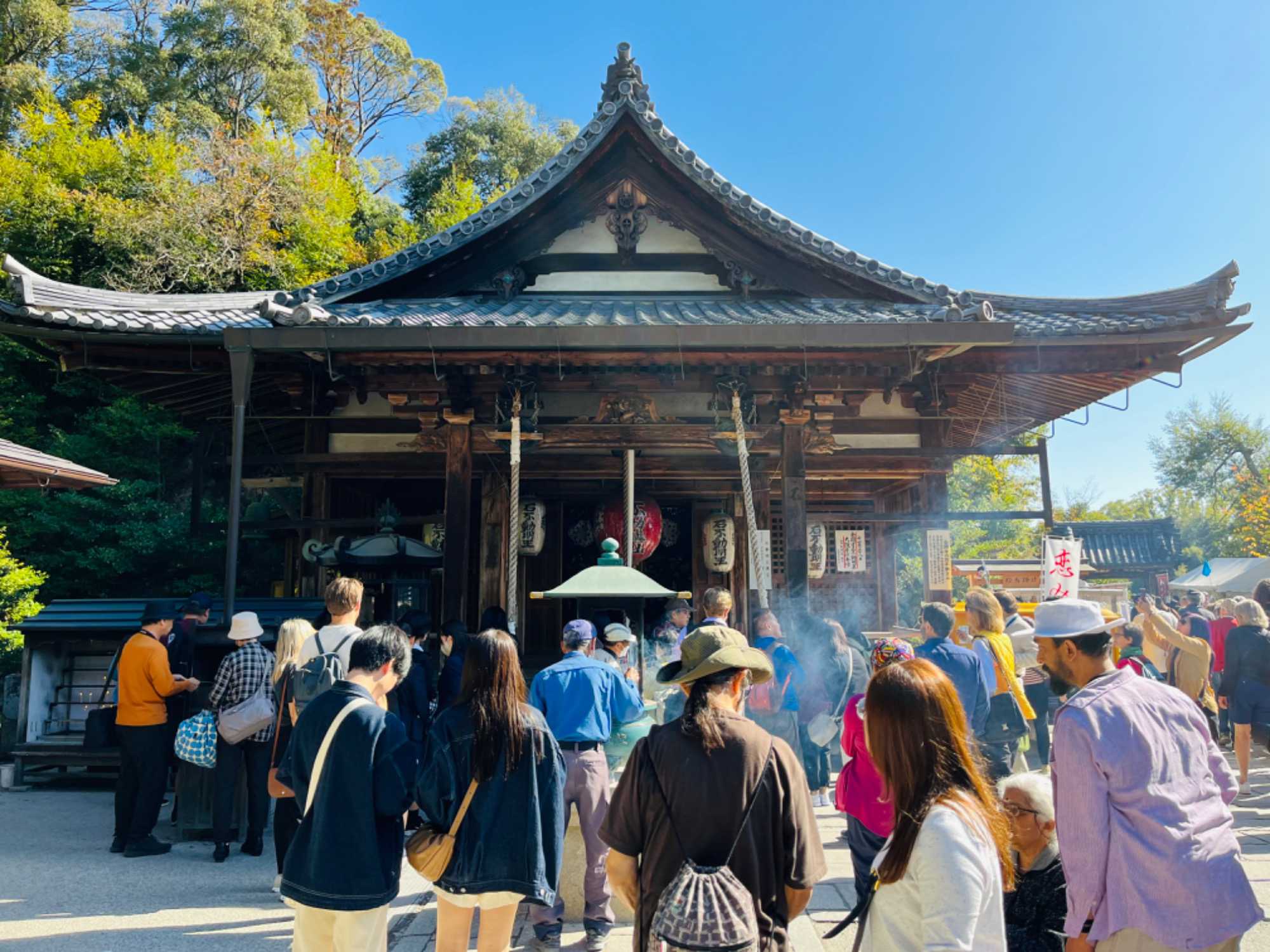 Nous poursuivons avec notre visite au fabuleux temple bouddhiste Kinkaku-ji ou mieux connu sous le nom du temple d’or. Le fameux Kinkaku-ji se trouve à proximité du Ryoan-ji. C’est l’un des temples bouddhistes les plus visités à Kyoto et les plus emblématiques du Japon. Et pour cause, sa majestueuse construction principale, baptisée Shari-den, est un pavillon recouvert de feuilles d’or. L’origine de ce site date du 8è siècle puis poursuit son expansion au cour du 12è siècle. Il est considéré comme une mixture harmonieuse de la culture Heian, Samouraï et Bouddhiste. En utilisant les styles japonais, indien et chinois connus à cette époque, il a créé une architecture originale. Les bâtiments autour ont été incendié plusieurs fois pendant la guerre d’Onin et seul le pavillon d’or a survécu. Le jardin a cependant gardé son aspect de l’époque. En 1987, le pavillon est rénové et reçoit une nouvelle couche, cinq fois plus épaisse, de feuilles d’or. En 1994, le Pavillon d’or est inscrit sur la liste du patrimoine mondial de l’UNESCO. Sa dernière rénovation date de l’automne 2020 ; il brille à nouveau depuis grâce à son toit entièrement doré. Maintenant, il est entièrement recouvert d’or pur. Nous sommes très impressionnés à la vue de ce temple ancestral et sa réflection sur l’étang double l’impact visuel.