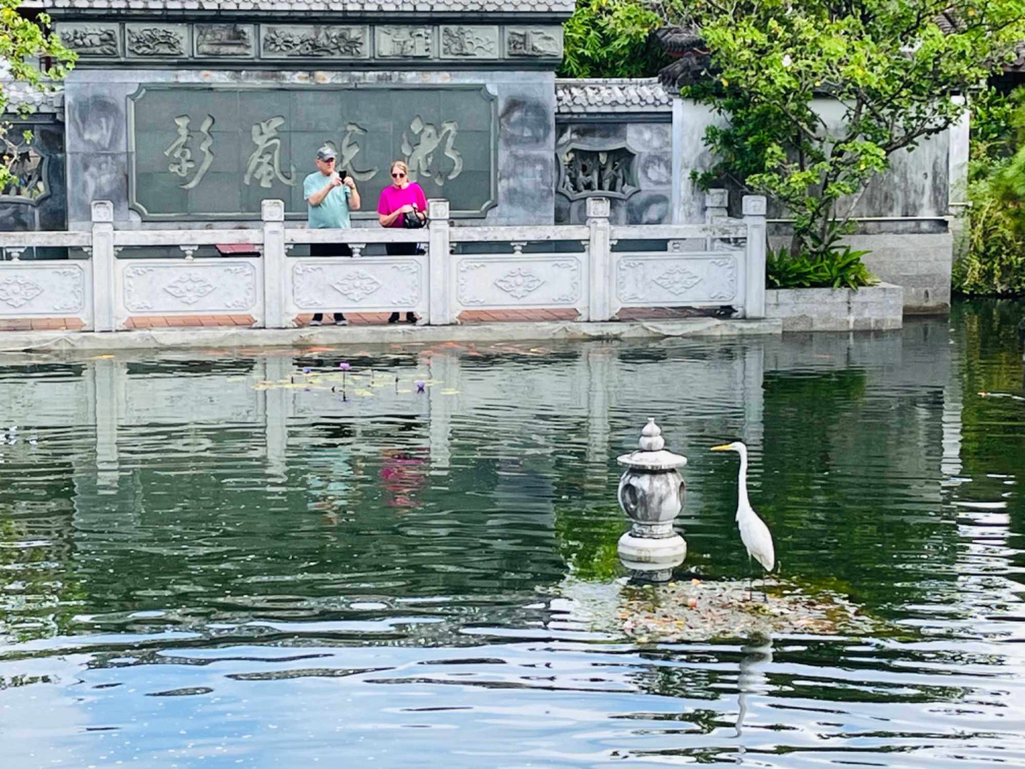 Nous sommes attendus au port par notre chauffeur pour se rendre, en autobus, visiter le jardin Fukushuen. Ce jardin a été ouvert pour la première fois en septembre 1992 pour commémorer le 10e anniversaire de la relation de ville sœur entre Naha et la ville chinoise de Fuzhou. Tout, de la planification à la construction, a été mené avec la coopération des ouvriers de Fuzhou pour créer un authentique jardin de style chinois.