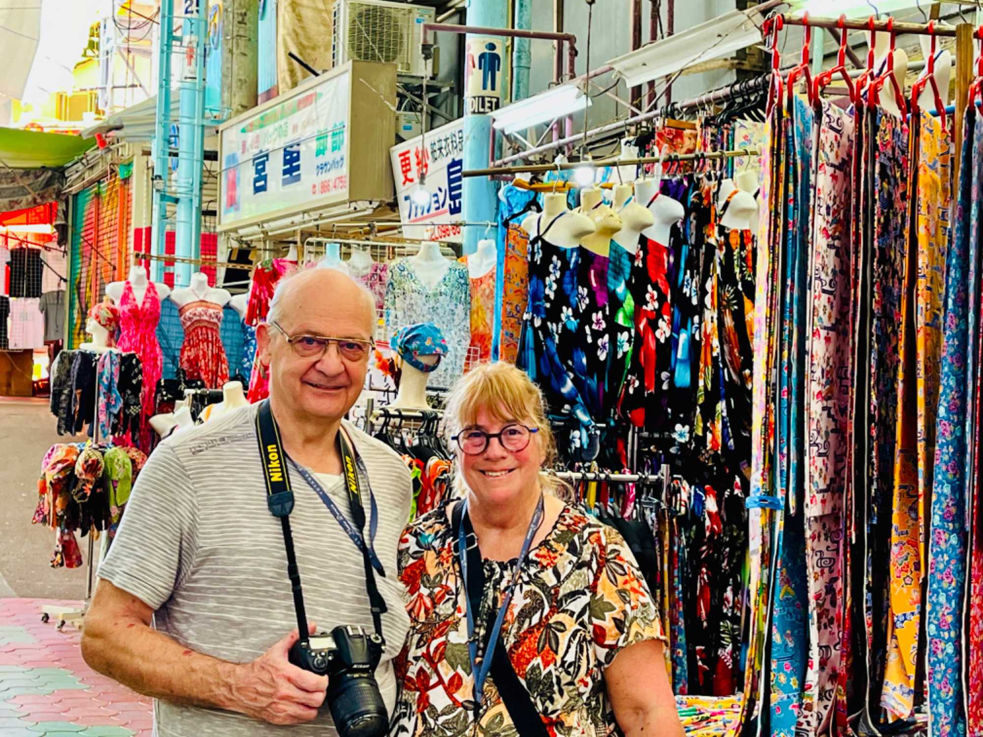 Nous continuons notre visite au marché public Makishi qui est le marché couvert de la capitale de l’île, Naha. Sur notre chemin, Jean nous montre une corde géante qui a servi pour battre le record Guinness du monde de la plus grosse corde pour faire le souque à la corde. Nous arrivons au marché Makishi. Il compte environ 150 boutiques et il a été construit dans les années 1970. C’est un endroit incontournable et lieu d’échanges de la capitale okinawaise. Situé dans un quartier qui remonte à l’époque où Okinawa était encore le royaume de Ryukyu et avait pour habitude de faire des échanges commerciaux avec les pays asiatiques voisins. C’est pour nous l’occasion de plonger dans le quotidien des habitants de la ville de Naha. Sur place y sont vendus des produits frais locaux, des vêtements, des bijoux, du whisky de riz, etc., le tout dans une ambiance un peu vieillotte. Après avoir fait le tour du marché, nous profitons de notre présence pour acheter des souvenirs et autres produits locaux pour notre bonheur !