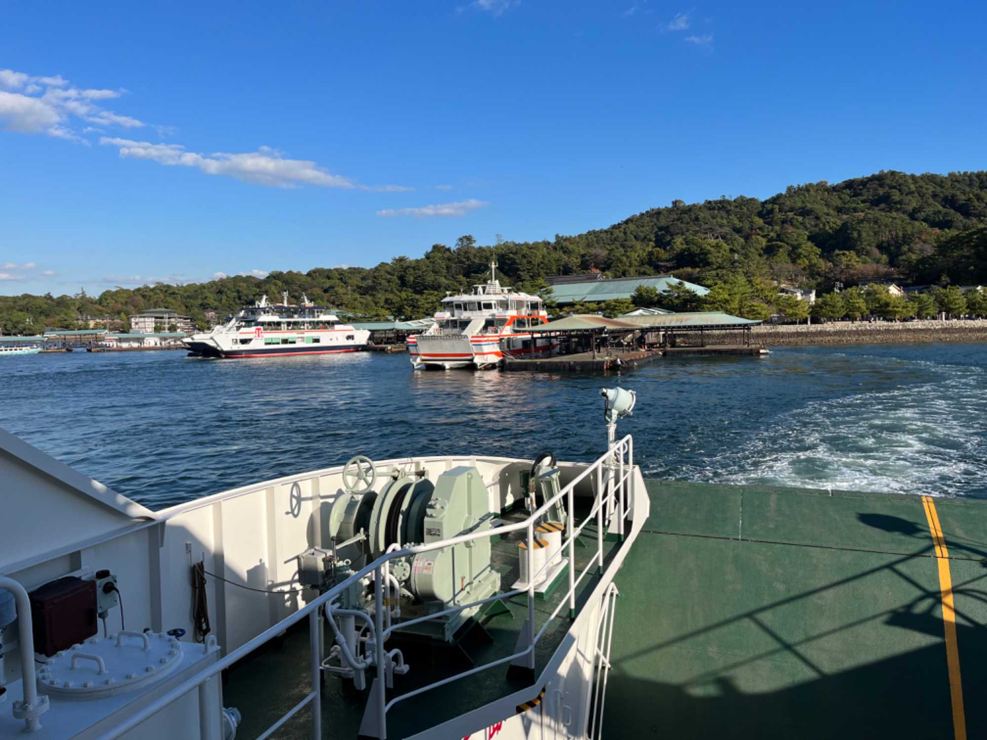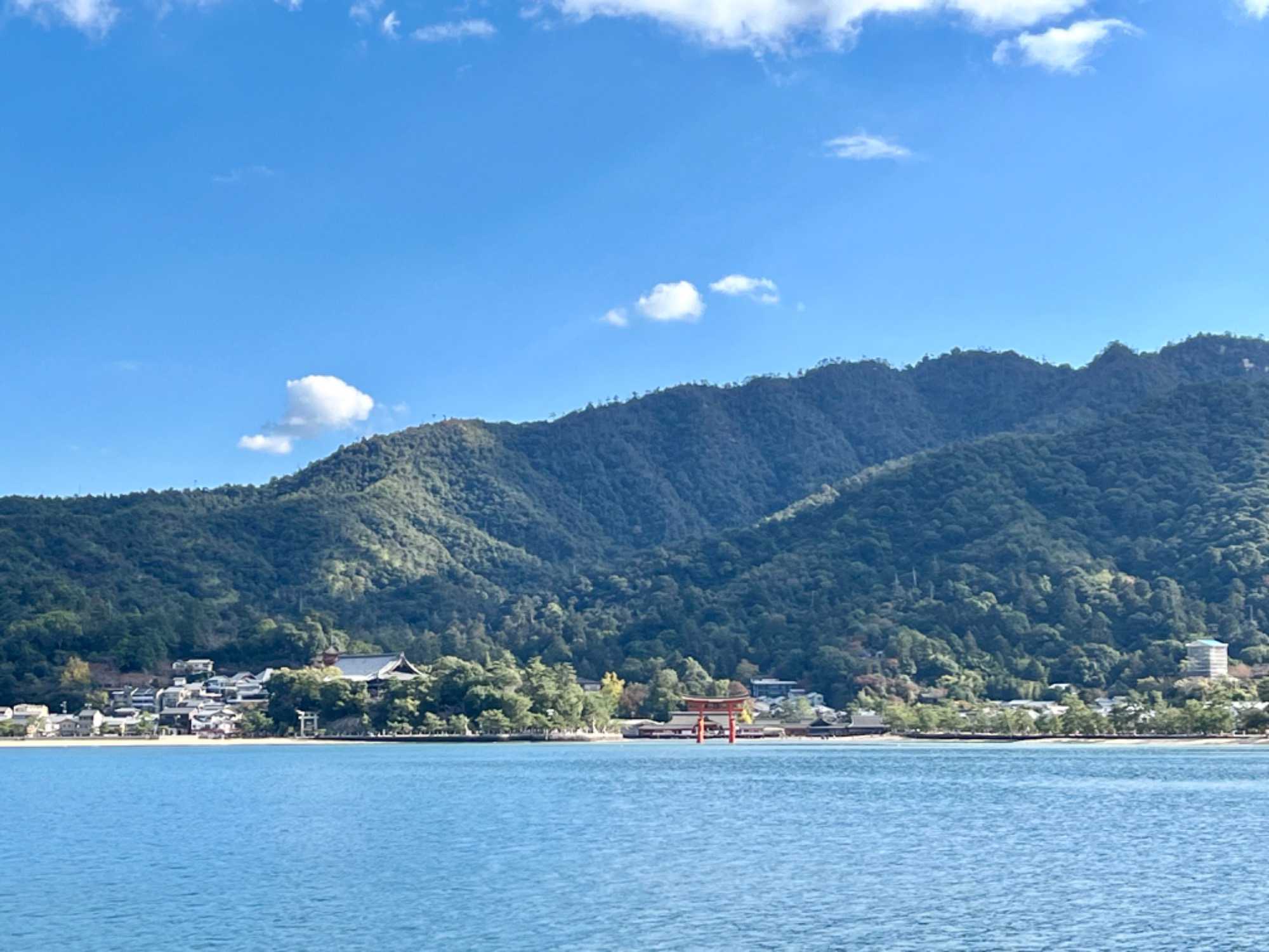 De plus, cette île où les voitures sont presque inexistantes est couverte d’érables et est habitée entre autres par des milliers de daims en liberté considérés comme étant les messagers des dieux. Ce sanctuaire, est en partie construit dans la mer, avec des bâtiments sur pilotis et un torii à quelques dizaines de mètres au large, grand symbole de la relation céleste. Quelques voyageurs font une caresse à l’un des nombreux daims qui se baladent à travers cette marée humaine. Mais, il faut faire attention, les daims sont très voraces, nous en avons vu un manger le ticket de traversier d’un touriste ! Les paysages magnifiques de l’île, ses belles plages ou ses sentiers de randonnée en font une destination appréciée et l’automne dévoile ses grands charmes avec des arbres aux couleurs vives.