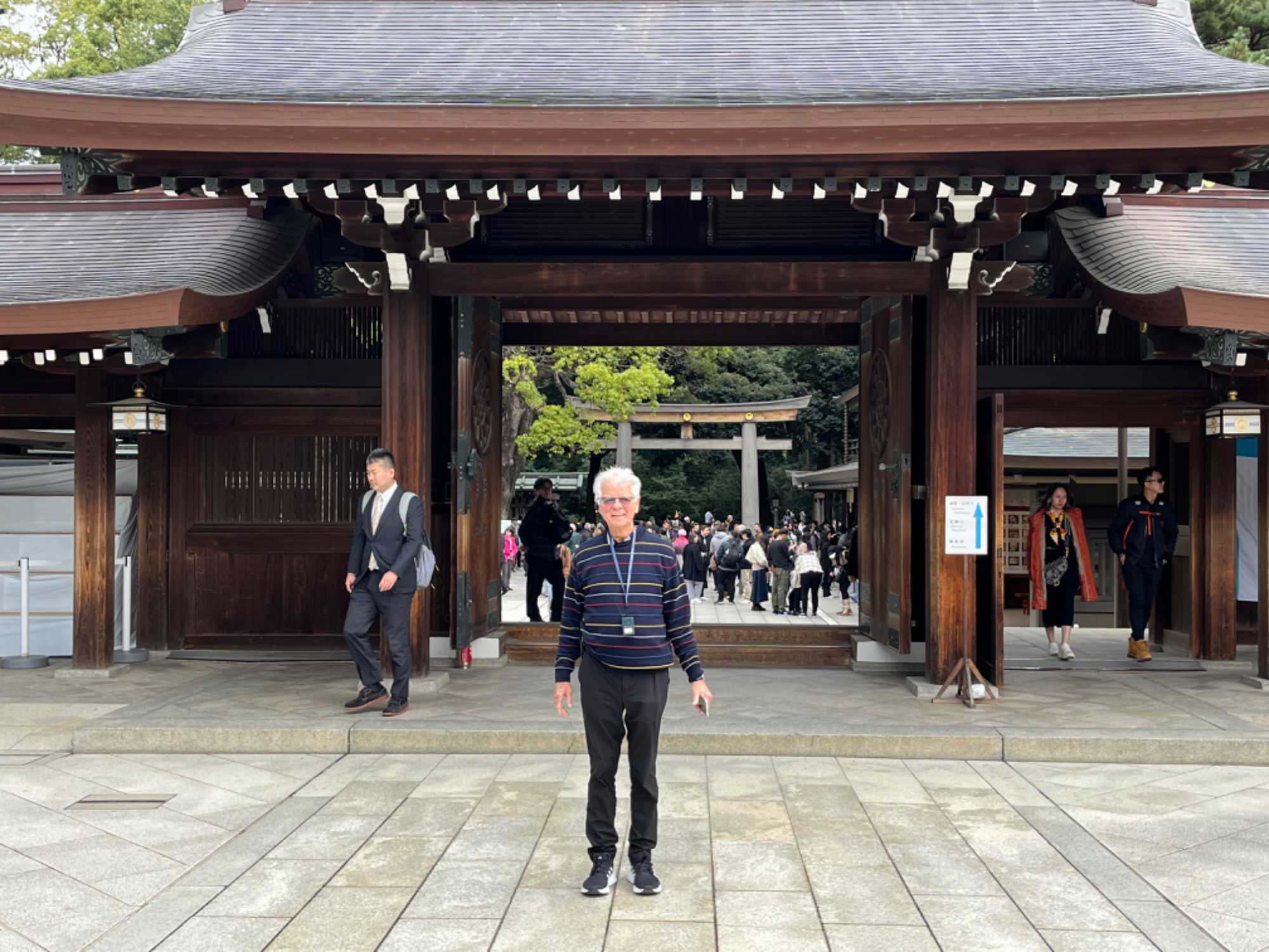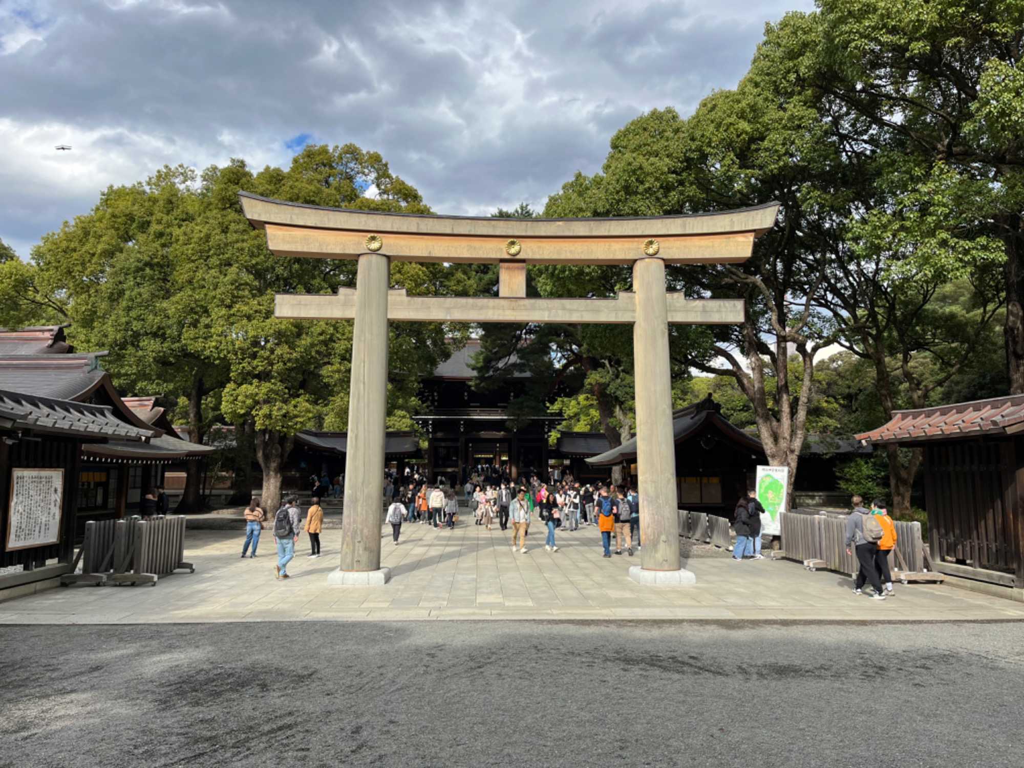 Nous poursuivons avec la visite du sanctuaire Meiji-jingu. Cette belle retraite verdoyante dans la jungle de béton environnante a été construite en 1920 pour vénérer l’empereur Meiji (1852-1912) sous le règne duquel le Japon est devenu un État moderne. Meiji-jingu est un vaste sanctuaire contigu au parc Yoyogi, dans le quartier de Harajuku, appartenant à l’arrondissement de Shibuya à Tokyo. Il y a un chemin où sont empilés des tonneaux de saké, offrandes faites au temple par des compagnies et des particuliers. Prisé des touristes, ce complexe shintoïste rénové en 2016 reste très fréquenté toute l’année. La visite se poursuit à travers la forêt jusqu’au jardin intérieur où se tiennent plusieurs mariages traditionnels chaque week-end. Contrairement à ce que l’on pourrait imaginer, la construction de Meiji-jingu remonte seulement du début du XXe siècle. Il fut édifié en hommage à l’empereur Meiji et à l’impératrice Shoken. Le jour de son ouverture, le 1er novembre 1920, plus d’un demi-million de Japonais s’étaient pressés pour visiter le sanctuaire. Aujourd’hui, il est particulièrement visité pour les festivités du nouvel an, où en moyenne trois millions de visiteurs viennent y faire la queue.