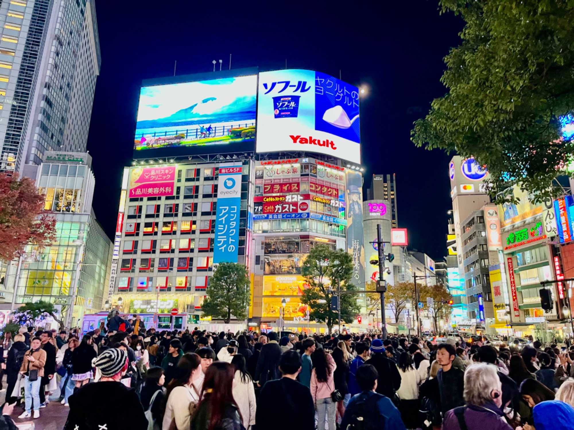 Nous terminons notre visite en passant par le très fameux Shibuya Crossing où des centaines de gens traversent en diagonale. Particulièrement populaire depuis les Jeux Olympiques de Tokyo en 1964, Shibuya est le quartier dédié à la mode en plein cœur de la ville, où tous les styles vestimentaires, jusqu’aux plus excentriques, sont représentés. Incontournable, lorsque l’on visite Tokyo, avec ses boutiques de vêtements, restaurants, cafés populaires, qui y abondent et rendent ses rues fort vivantes et dynamiques. On y vient pour voir, pour être vu et pour y dénicher vêtements et accessoires tous plus originaux les uns que les autres ! Emprunté par plus de 100,000 personnes chaque jour, le carrefour de Shibuya a de quoi donner le vertige. Il fait parti des images célèbres du Japon et a servi de cadre de tournage pour quelques films emblématiques. Aux heures de pointe son passage zébré en diagonale donne l’impression d’un champ de bataille. Shibuya, c’est un symbole, un poumon de la capitale et la nuit venue on ne peut s’empêcher de lever les yeux vers les écrans géants de ce quartier.