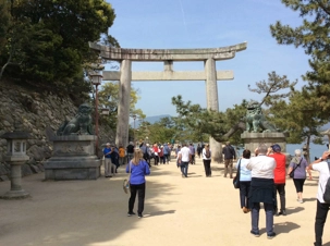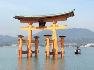 En empruntant un ferry, nous partons à la découverte d’un des trois plus beaux sites du Japon, Miyajima, L'île où cohabitent les hommes et les dieux', surtout reconnaissable par son immense torii orangé qui semble flotter devant le sanctuaire millénaire d’Itsukushima, dont la première construction date de 593. De plus, cette île où les voitures sont presque inexistantes est couverte d''érables et est habitée entre autres par plus de 3000 daims en liberté considérés comme étant les messagers des dieux. Ce sanctuaire, est en partie construit dans la mer, avec des bâtiments sur pilotis et son torii à quelques dizaines de mètres au large, grand symbole de la connection céleste.