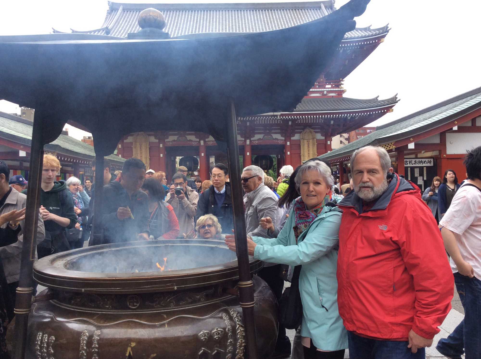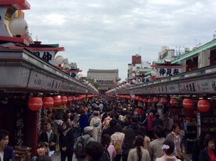 Un autre arrêt dans un quartier ancien de Tokyo, soit celui d’Asakusa. Le temple le plus vénéré de Tokyo, le Senso-Ji. Ce temple est le plus vieux de Tokyo, et est le premier à réunir les deux religions : le shintoisme et le bouddhisme. Il a été terminé en l’an 645. Nous sommes passés sous l''immense porte Hozo Mon pour accéder au très animé marché extérieur de l''arcade Nakamise-dori, Nous laissons du temps pour ressentir l'endroit et flâner dans ce bain de foule.