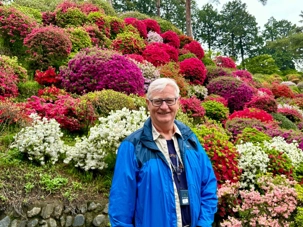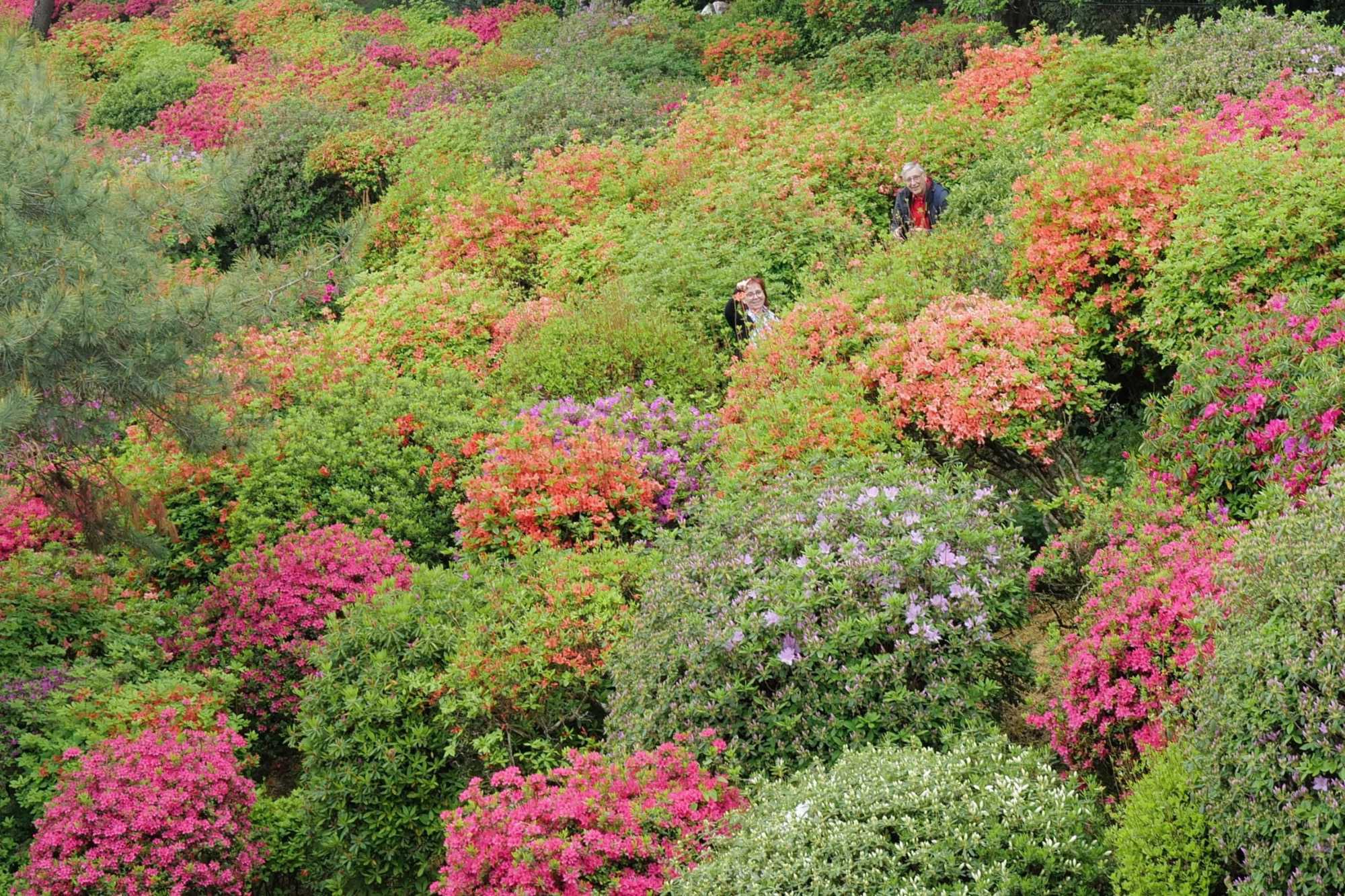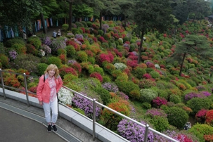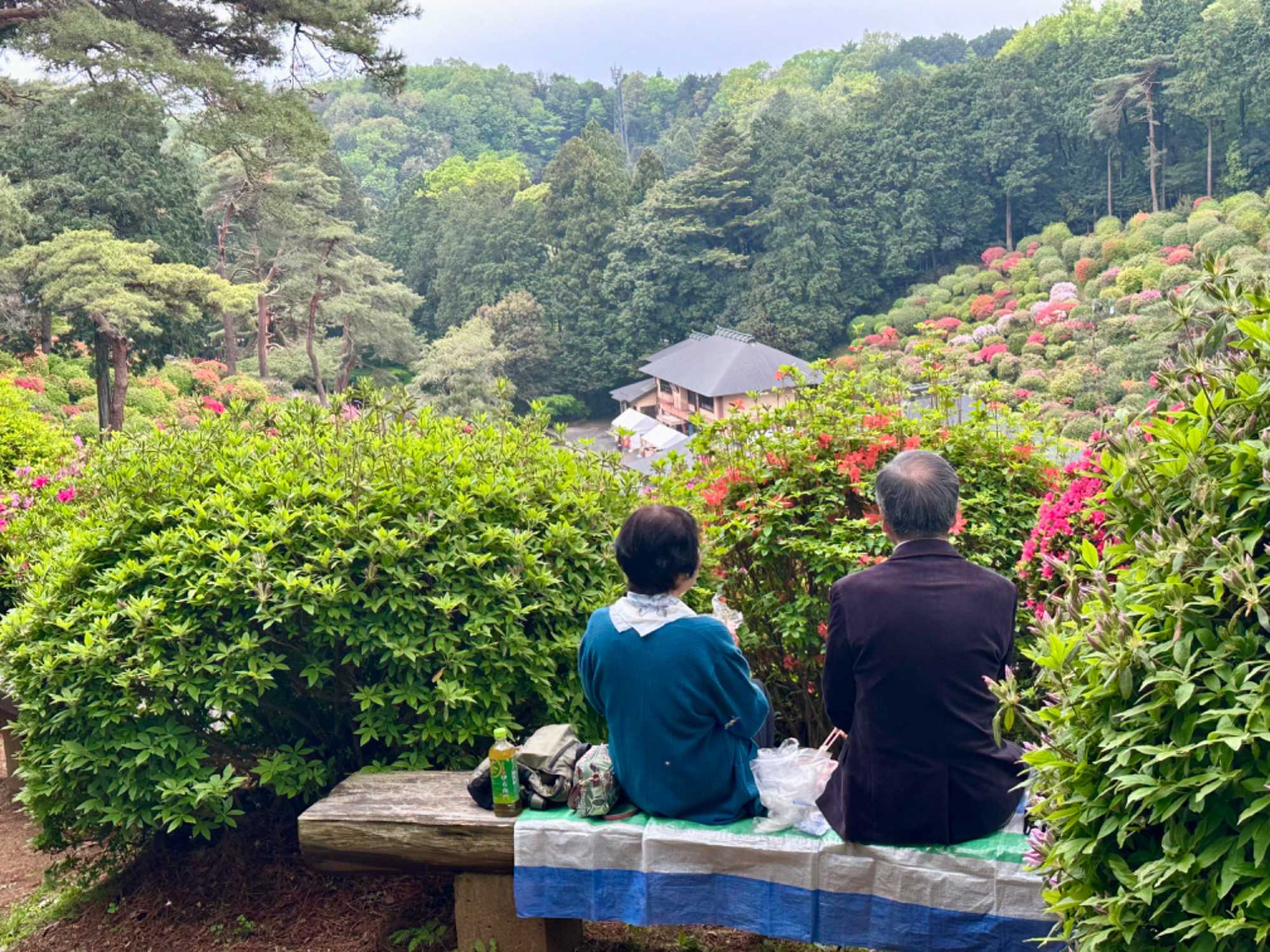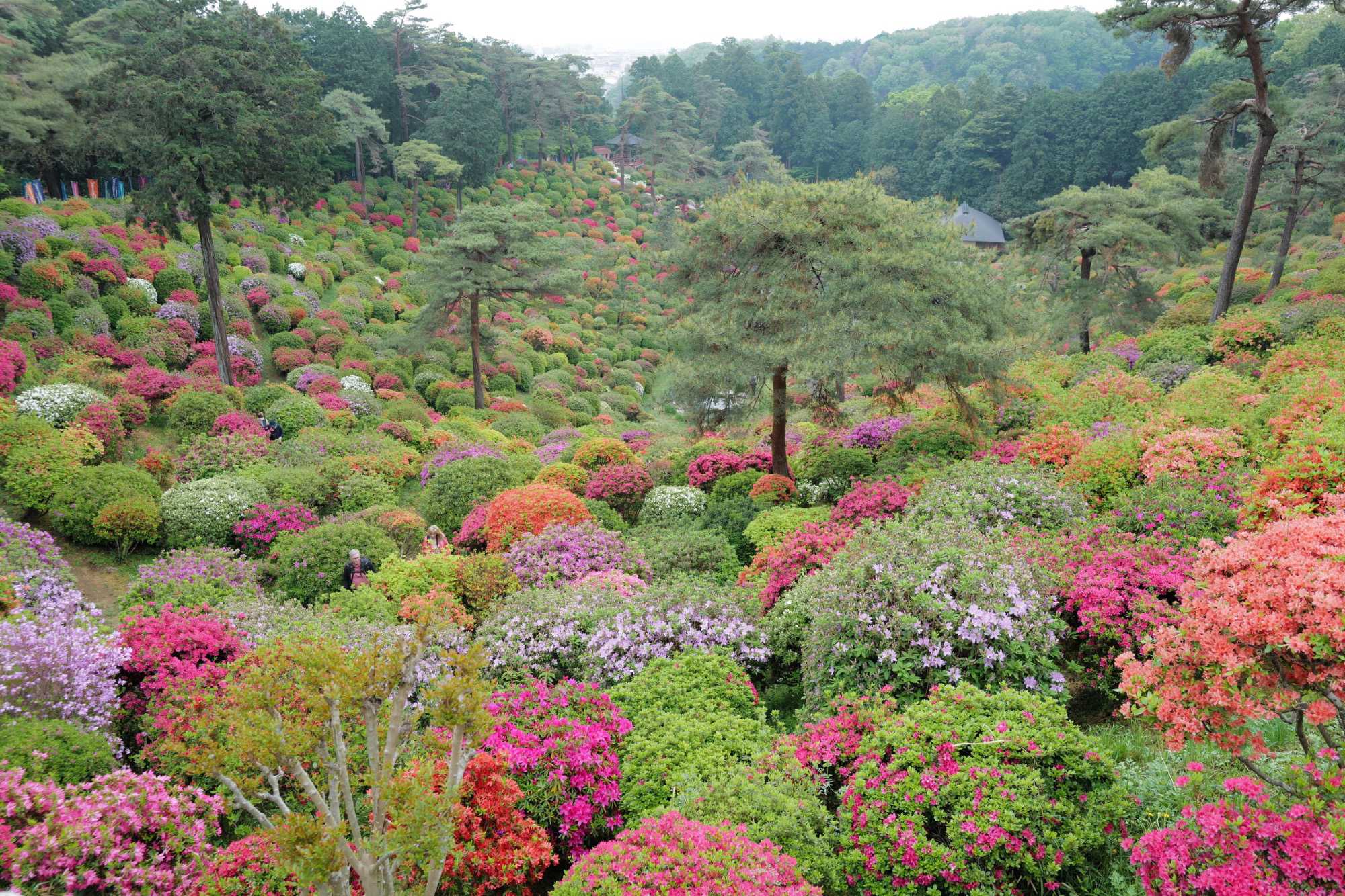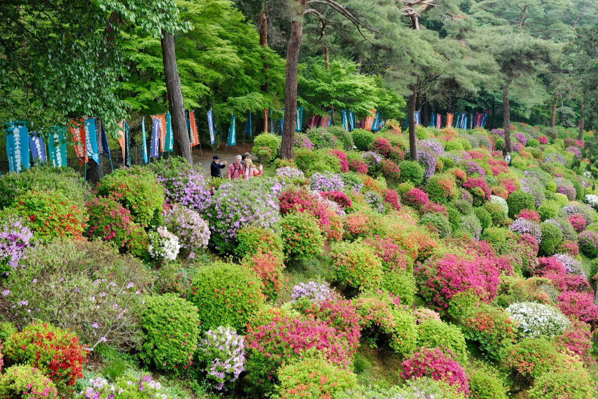Petit-déjeuner à l’hôtel et départ en autobus pour la visite du temple Shiofune Kannon-ji à Ōme. La température est pour une première fois nuageuse mais sans pluie. Nous sommes tous prêts pour notre deuxième jardin qui se trouve à environ 1 heure de route de Tokyo. Nous partons en autobus aujourd’hui et nous sommes tous fébriles de découvrir un autre beau jardin au Japon. Nous arrivons à Ome et nous sommes les seuls touristes étrangers qui viennent aujourd’hui visiter ce site magnifique. Shiofune Kannon-ji est un vaste temple bouddhiste situé dans la ville d'Ome, à l'ouest de Tokyo. Le site vieux de 1 300 ans est réputé pour ses myriades d’azalées multicolores (ou rhododendrons) qui fleurissent en masse de la mi-avril au début mai. Ce n’est donc pas un hasard si je tenais tant à amener mon groupe de voyageur à cette période de l’année. Nous en profitons pour prendre plusieurs photos, nous en avons plein la vue dans ces jardins du temple et ses 17 000 azalées. De nombreux sentiers descendants et ascendants traversent les buissons d'azalées et permettent de s'immerger totalement dans les lieux, et de faire le plein de parfums et de couleurs pour l'année. Les arbustes de rhododendrons sur les flancs de la vallée se parent de magnifiques couleurs vives, du rose au rouge en passant par le violet et le blanc. Le point culminant est Tsutsuji Matsuri, le festival des azalées qui a lieu le 3 mai de chaque année. Dès notre arrivée, nous sommes éblouis par tant de beauté. Les boules d’azalées sont gigantesques et couvre la colline qui au sommet nous présente la déesse Kannon. La statue de Kannon représente la déesse bouddhiste Guanyin, également connue sous le nom de Kannon en japonais. Guanyin est une figure de compassion et de compassion universelle dans le bouddhisme, vénérée pour sa capacité à percevoir et soulager les souffrances du monde. Elle est immense et elle surplombe tout le cratère rempli de fleurs. Nous n’avons qu’une seule phrase en tête, « comme c’est beau » et on le répète à chaque détour en parcourant la colline. J’ai même prise des photos de Claude et de Jany au milieu des bosquets d’azalées et en blague on parle de « où est Charlie ». Nous ne nous lassons pas de contempler et d’admirer toutes ces couleurs d’azalées et en plus nous avons droit à de la belle musique classique reposante tout en marchant dans ces allées fleuries. Après cet avant-midi nous quittons à regret ce beau jardin pour notre prochain arrêt, celui de la ville de Kawagoe.