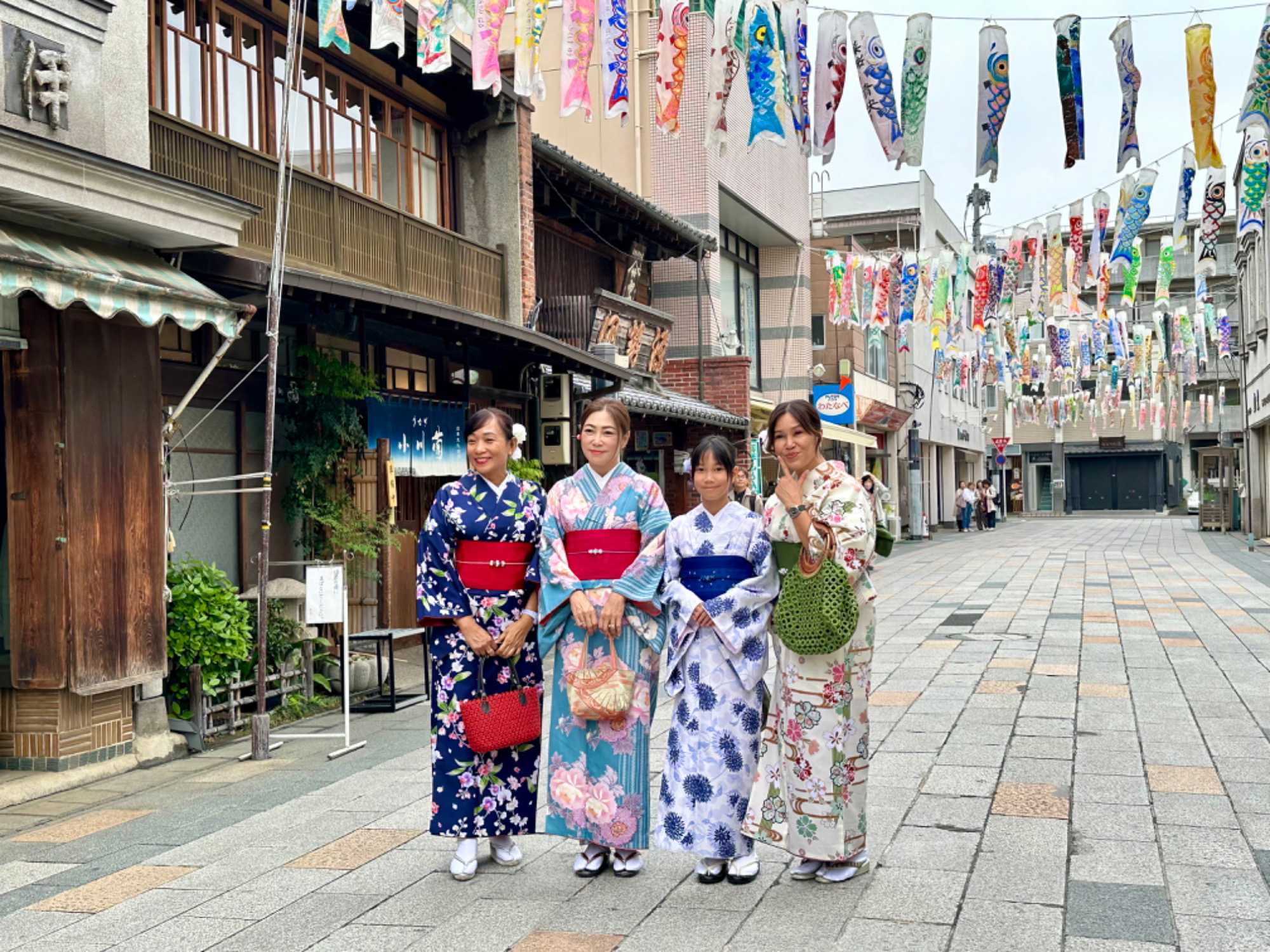 Nous débutons notre excursion par une balade à pied. Immédiatement, on commence par le quartier de Wakitamachi doté d'une allée marchande shotengai baptisée Crea mall, qui se révèle assez moderne et animée. Après ce passage rapide, on pénètre dans le centre-ville historique, reconnaissable à ses entrepôts traditionnels kurazukuri alignés au bord de l'avenue principale. On apprécie la vue sur cette ancienne architecture reconstruite et préservée comme à l'époque Edo. On s'arrête devant la tour Toki no Kane qui fait la fierté de la ville et figure dans la liste des 100 paysages sonores du Japon. D'une hauteur de 16 mètres, le clocher en bois est reconstruit en 1893 et abrite une cloche coulée en 1694 qui sonne 4 fois par jour (à 6h, 12h, 15h puis 18h). On termine le tour du centre-ville par la charmante ruelle Kashiya Yokocho réputée pour ses nombreux magasins de confiseries traditionnelles aux senteurs irrésistibles. Cette dernière est d'ailleurs ainsi classée dans les 100 paysages parfumés emblématiques du Japon.