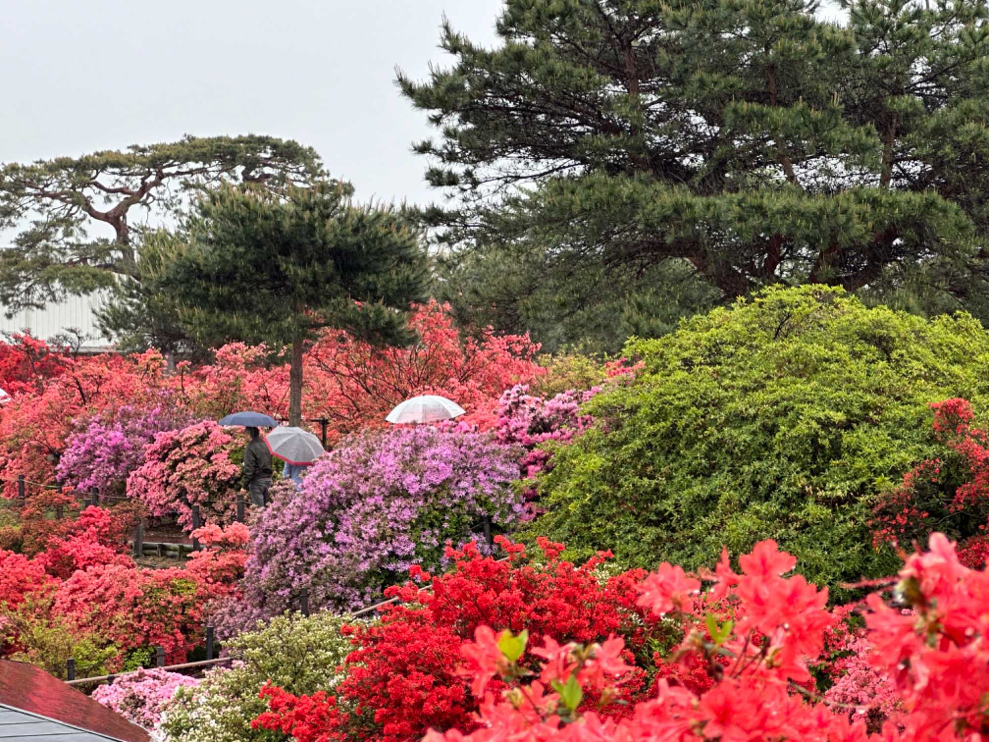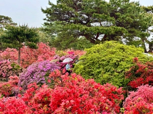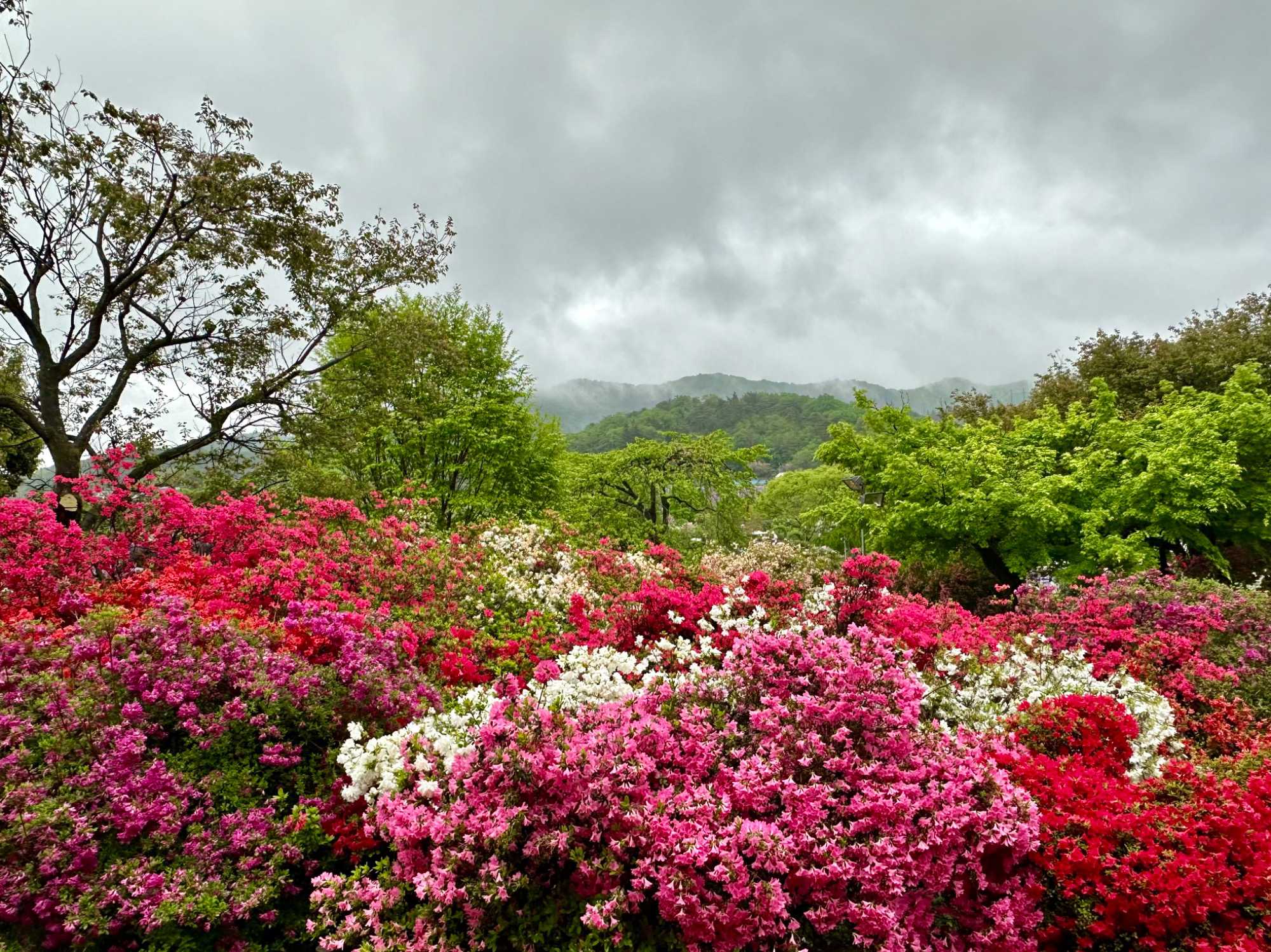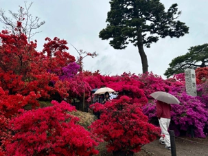 Petit déjeuner à l’hôtel et départ en autobus pour la visite de la préfecture de Gunma. La température annoncée n’était pas la plus belle mais avec la chance que nous avons eu depuis le début, nous ne pouvons pas nous plaindre. Nous quittons donc Tokyo pour aller vers Tatebayashi ou la visite des jardins Tsutsujigaoka nous attend. Une visite que j’anticipe depuis longtemps car les fleurs c’est une autre de mes passions après les voyages 😊Malgré le temps gris je suis comme tous mes voyageurs bien de bonne humeur car notre journée s’annonce exceptionnelle et je vous le confirme maintenant elle l’a été. Notre arrivée ne nous laisse pas prévoir le spectacle grandiose qui nous attendait après avoir passé les portes du temple. Je peux vous confirmer que c'est une de mes plus belles journées fleuries de toute ma vie! C'est pour cette raison que vous trouverez plus de 300 photos dans cet album. J'y pense encore aujourd'hui et je me pince pour dire que j'y étais. Une image vaut milles mots donc à vous de constater maintenant. Et même malgré la pluie très légère les photos sont splendides et nous n'avons jamais pensé durant nos promenades à cette bruine qui nous a donnée de belles photos avec des couleurs plus vives. Les photographes de mon groupe se sont régalés.