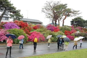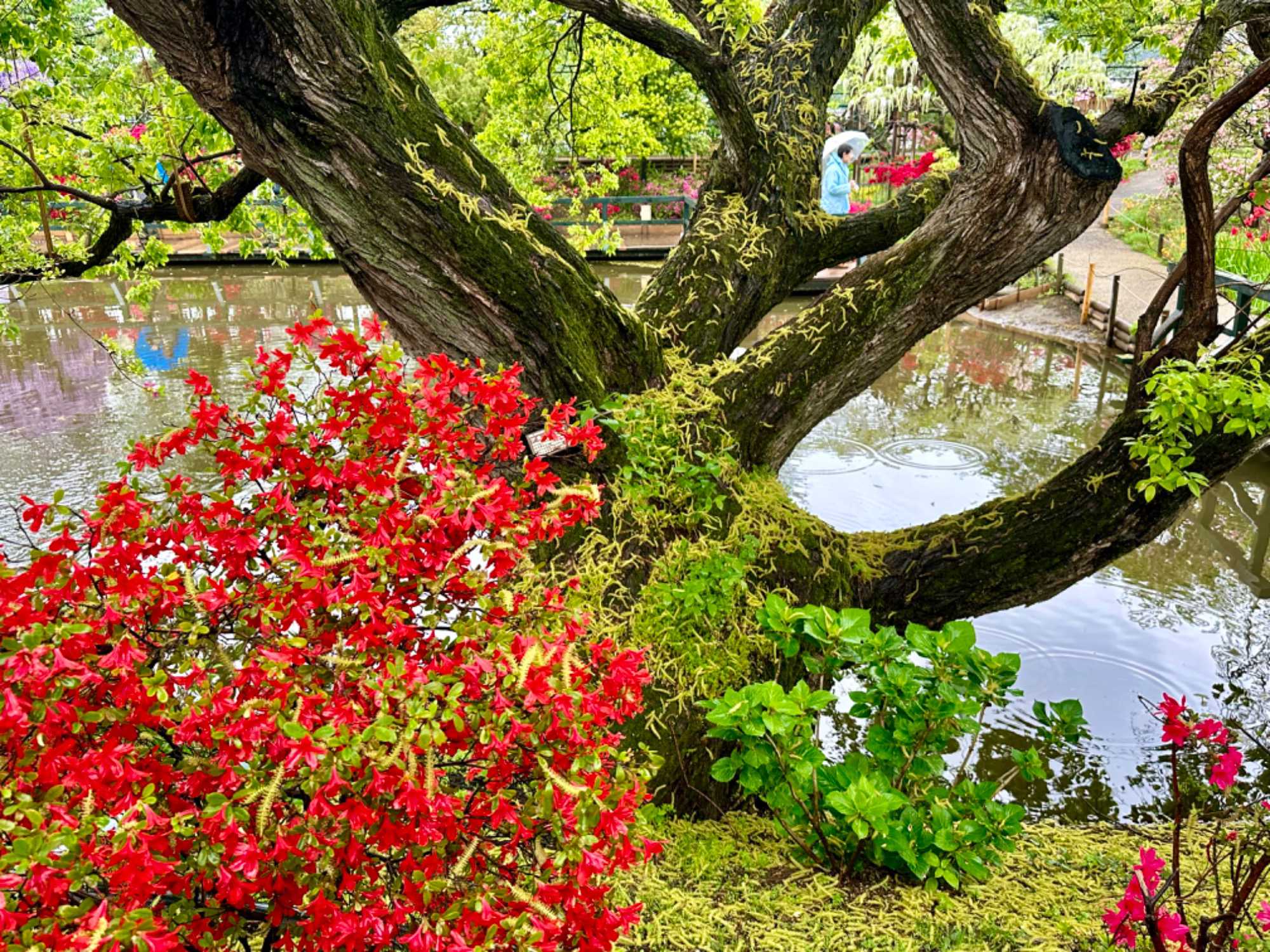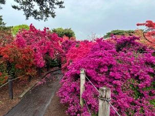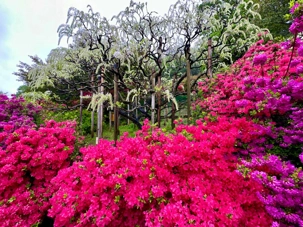 Quel bonheur nous sommes à la meilleure période et la légère pluie s’est arrêtée dès notre arrivée, elle revenait de temps en temps mais rien d’important comme précipitation. Je ne pense pas pouvoir vous décrire la beauté de ces jardins, à part vous dire que les seuls mots que tous prononcent est comme c’est beau mais c’est trop beau ….. Vraiment incroyable. On se croirait dans un labyrinthe avec tous ces petits sentiers où les azalées sont de grandeur géante et on ne voit souvent que la tête des personnes qui s’y aventurent. C’est juste incroyable, les couleurs et les fleurs. Nous profitons de notre avant midi en prenant des photos et en marchant tranquillement dans ces jardins si calmes. Nous quittons ce décor paradisiaque pour se rendre à notre lunch prévu dans un petit village avoisinant.