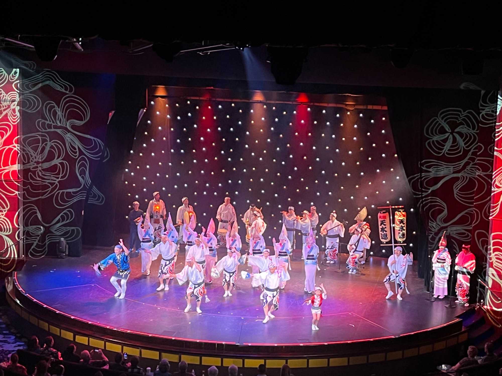 Nous retournons au port pour aller prendre notre souper à l’excellente salle à manger du Millenium. En soirée, un groupe d’artistes japonais nous présente un spectacle de musique et de danse dans le grand théâtre du navire. Nous espérons que nos récits vous font rêver de voyages.