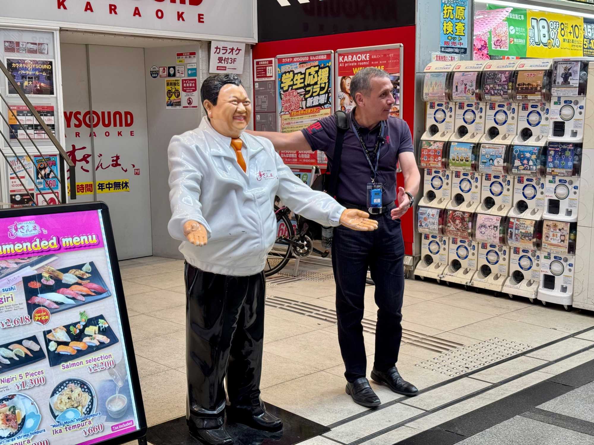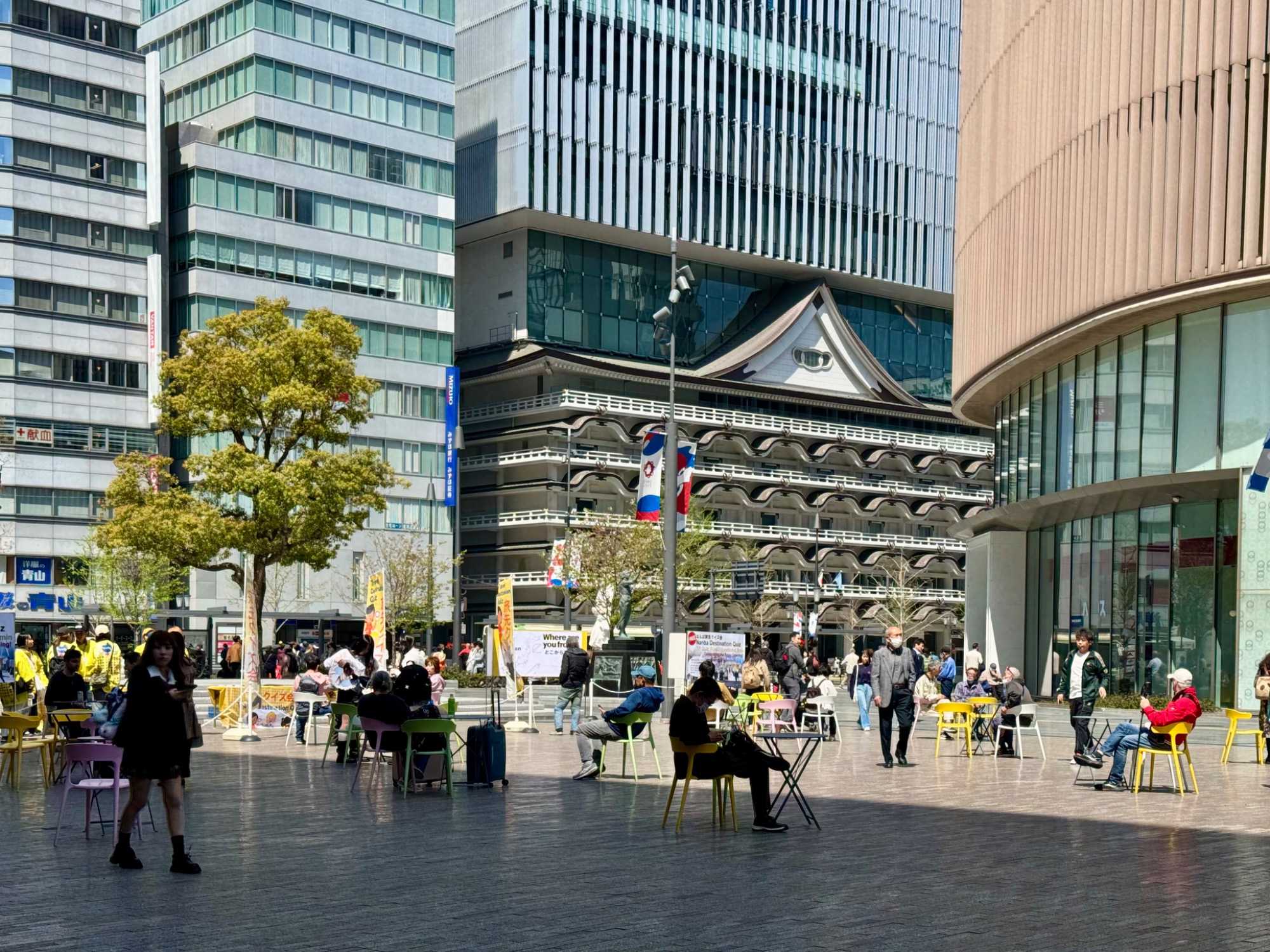 Déjà à notre arrivée, nous sommes fascinés par les magasins, les jeunes dans la rue et toute l’effervescence y régnant. Nous découvrons les magasins, les restaurants et les impressionnantes devantures des commerces. Les Japonais aiment beaucoup les produits de luxe. On peut voir tous les grands noms. Nous partons marcher dans la rue Dotonbori. C’est une rue populaire située dans le quartier sud de Namba à Osaka au Japon. Nous sommes tôt le matin mais il ne tarde pas que des milliers de gens vont envahir les rues du quartier, haut-lieu touristique de jour comme de nuit. La promenade est avant tout divertissante entre les magasins, les salles de jeux, les restaurants et les bars. La zone de Dotonbori est considérée comme l’une des attractions touristiques principales au cœur de la ville d’Osaka. C’est en somme, une rue populaire, vivante et remplie de divertissements; une rue unique longeant le canal Dotonbori entre le pont Dotonbori et le pont Nipponbashi, dans le quartier de Namba. Dotonbori est célèbre pour ses nombreuses enseignes lumineuses, comme celle du confiseur Ezaki Glico qui représente un coureur passant la ligne d’arrivée. Nous nous sommes baladés à la galerie Shinsaibashi. Cette rue, de près d’un kilomètre et demi, s’étend de la gare de Shinsaibaishi à Dotonbori. Elle constitue l’une des rues commerçantes les plus fréquentées et les plus anciennes du Japon. Il existe des magasins pour tous les budgets et tous les goûts, de la haute couture à l’artisanat traditionnel. Il va sans dire que nos voyageurs sont impressionnés par la foule tout autour et par le spectacle de rue auquel nous assistons.