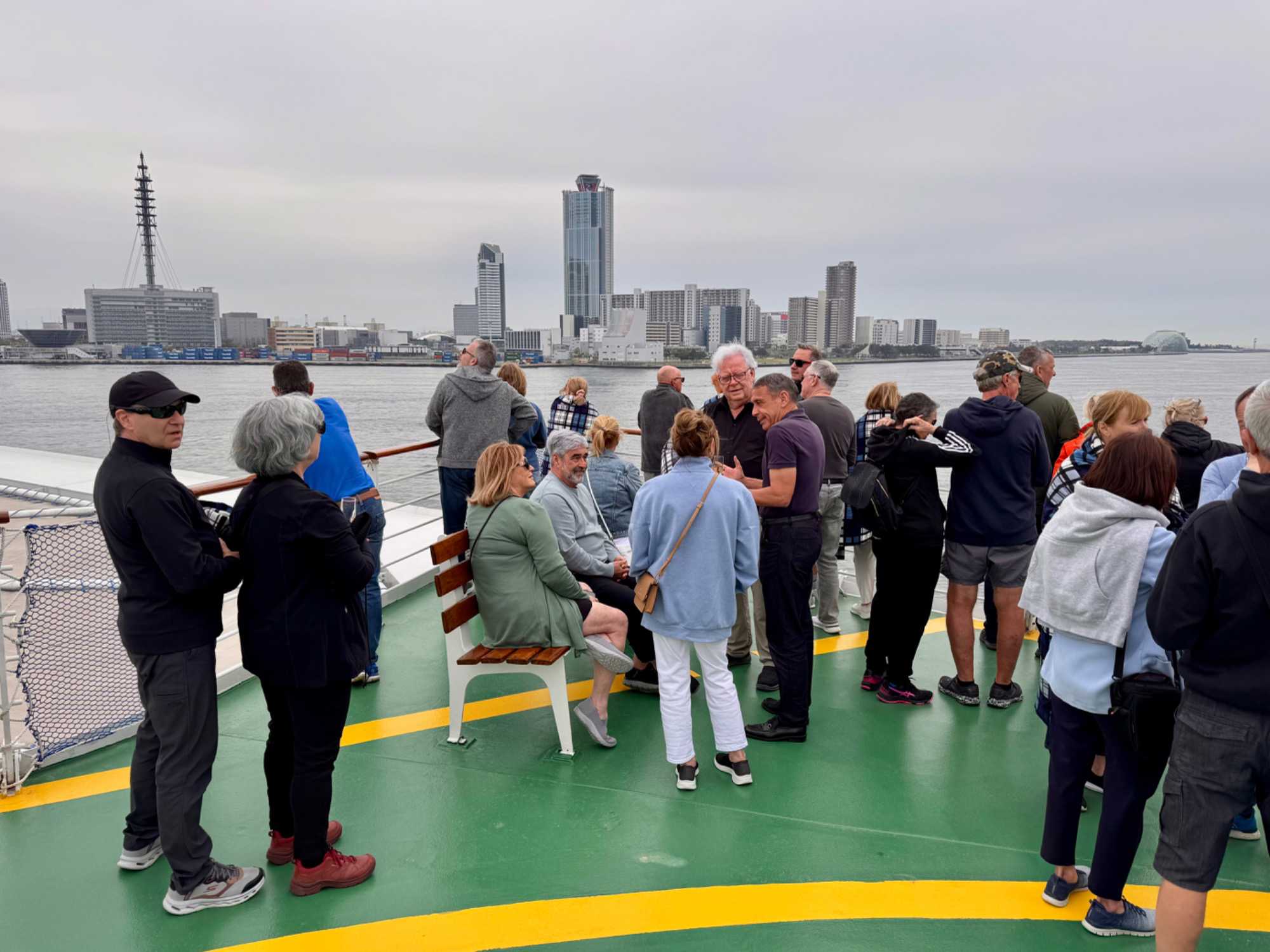 Nous revenons en temps pour le départ du navire à 15h00 et on nous invite sur l’hélipad, situé dans la pointe du navire, pour voir le voir s’éloigner d’Osaka. Les matelots enlèvent les amarres et le capitaine fait la manœuvre du départ. Des serveurs sont sur place pour offrir un verre de mousseux aux voyageurs présents. Quelle belle façon de dire au revoir à la belle ville d’Osaka. Il y a plein d’activités en fin de journée sur le navire et tous ont pu profiter des nombreux spectacles dont celui se déroulant au grand théâtre en soirée. Les artistes, musiciens et acrobates sont vraiment exceptionnels sur le Millenium.