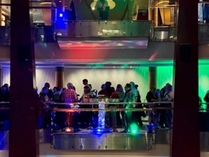 Tout le monde est ravi par la diversité des activités proposées. Ce soir, plusieurs voyageurs vont voir l’illusionniste Jeremy Tan. Il nous a démontré comment faire un cube Rubik avec une main et les yeux fermés ! Ensuite, la disco silencieuse avec les écouteurs en a amusé plusieurs.