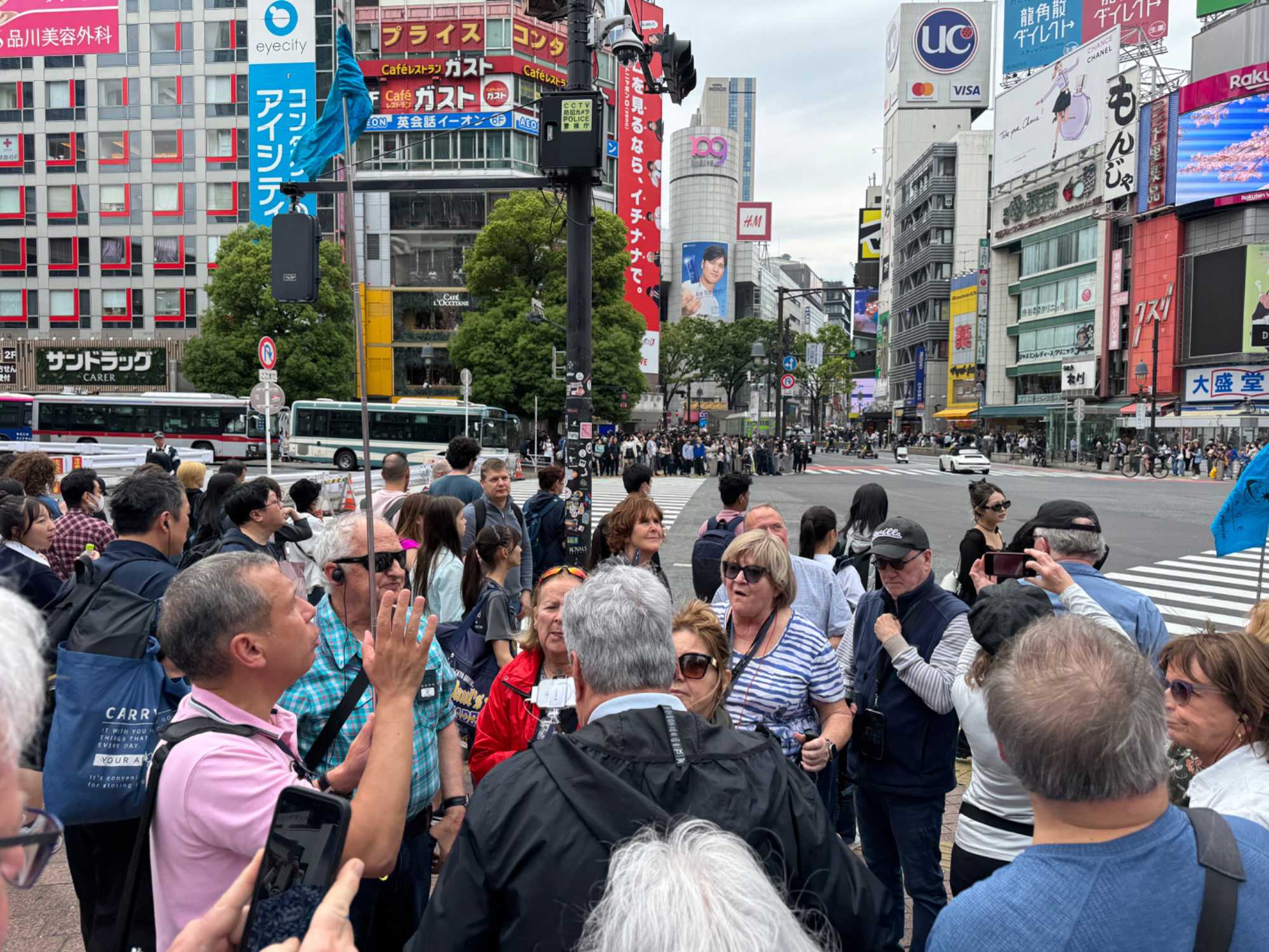 Après le dîner, nous poursuivons notre visite en passant par le très fameux Shibuya Crossing où des centaines de gens traversent les rues en diagonale. Particulièrement populaire depuis les Jeux Olympiques de Tokyo en 1964, Shibuya est le quartier dédié à la mode en plein cœur de la ville. Tous les styles vestimentaires, jusqu’aux plus excentriques, y sont représentés. C’est une visite incontournable à Tokyo avec ses boutiques de vêtements, restaurants, cafés populaires, qui y abondent et rendent ses rues fort vivantes et dynamiques. On y vient pour voir et pour y dénicher vêtements et accessoires tous plus originaux les uns que les autres ! Emprunté par plus de 100,000 personnes chaque jour, le carrefour de Shibuya a de quoi donner le vertige. Il fait parti des images célèbres du Japon et a servi de cadre de tournage pour quelques films emblématiques. Aux heures de pointe son passage zébré en diagonale donne l’impression d’un champ de bataille. Shibuya, c’est un symbole de la capitale et on ne peut s’empêcher de lever les yeux vers les écrans géants de ce quartier. En raison de ses immenses écrans publicitaires et de sa circulation piétonnière dense, le Shibuya Crossing est souvent comparé au carrefour du Times Square à New York et du Piccadilly Circus à Londres. Il est couramment considéré comme un élément représentant l’image ultra-moderne de Tokyo dans le monde.
