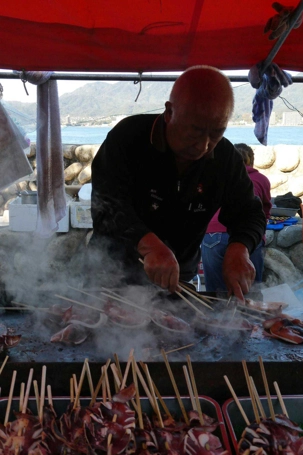Miyajima a plusieurs spécialités, notamment le "Momiji-manju" (un gâteau à la feuille d'érable fourré), les huîtres chaudes ou encore la spatule à riz. J’ai bien tenté, sans succès, de faire croire à mes invités que sur l’île on faisait du sirop d’érable. Tous les éléments sont présents: les érables, les gâteaux en forme d’érable, les effigies au sol en feuille d’érable et la fameuse palette ….. Mais à riz !! Je me suis, une fois de plus, attiré des riz..ées….!!!