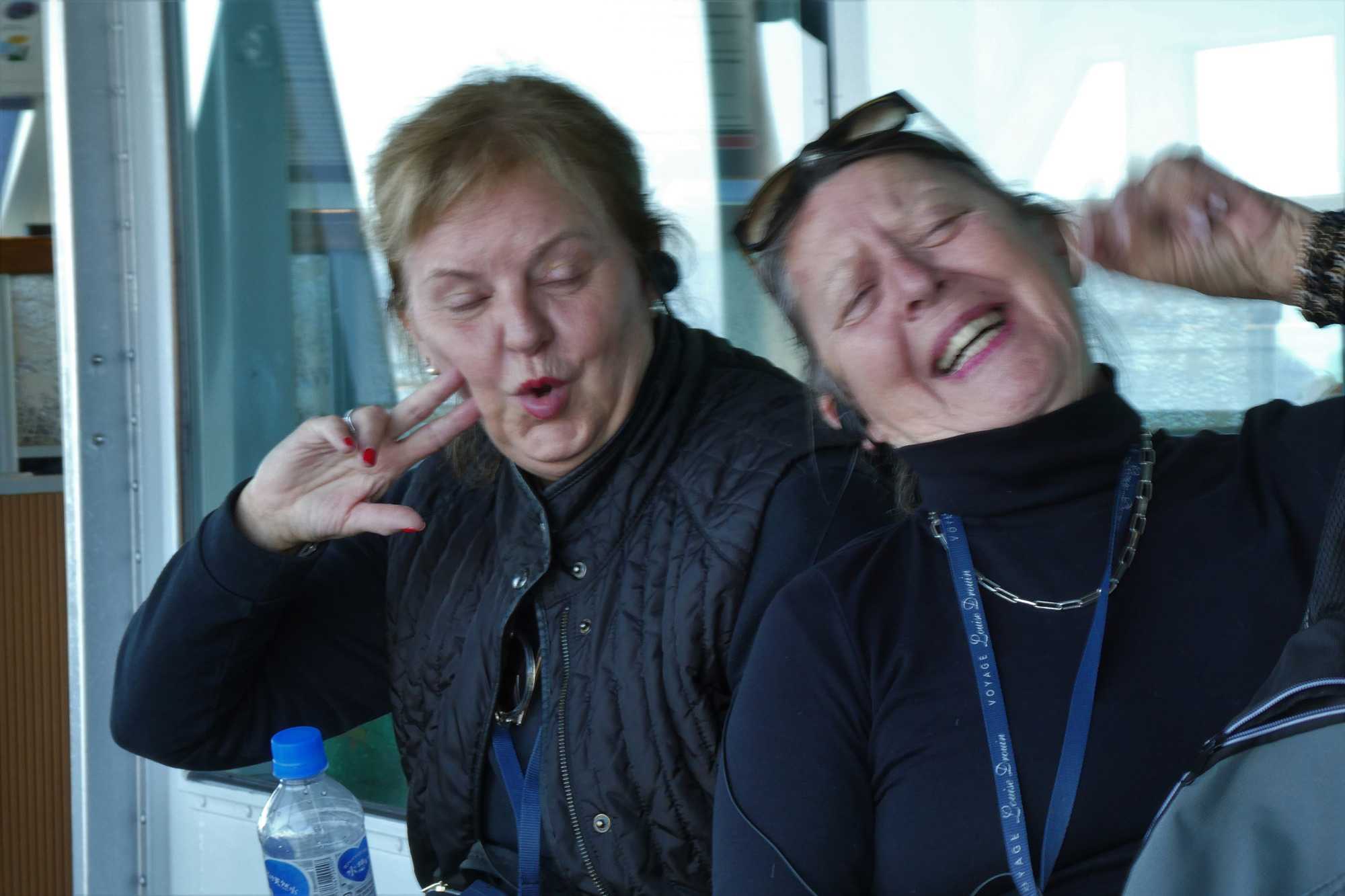 Sous un ciel bleu, nous montons à bord du bus qui nous amène vers le port pour prendre le petit traversier vers Miyajima, île sacrée du shintoïsme classée UNESCO.