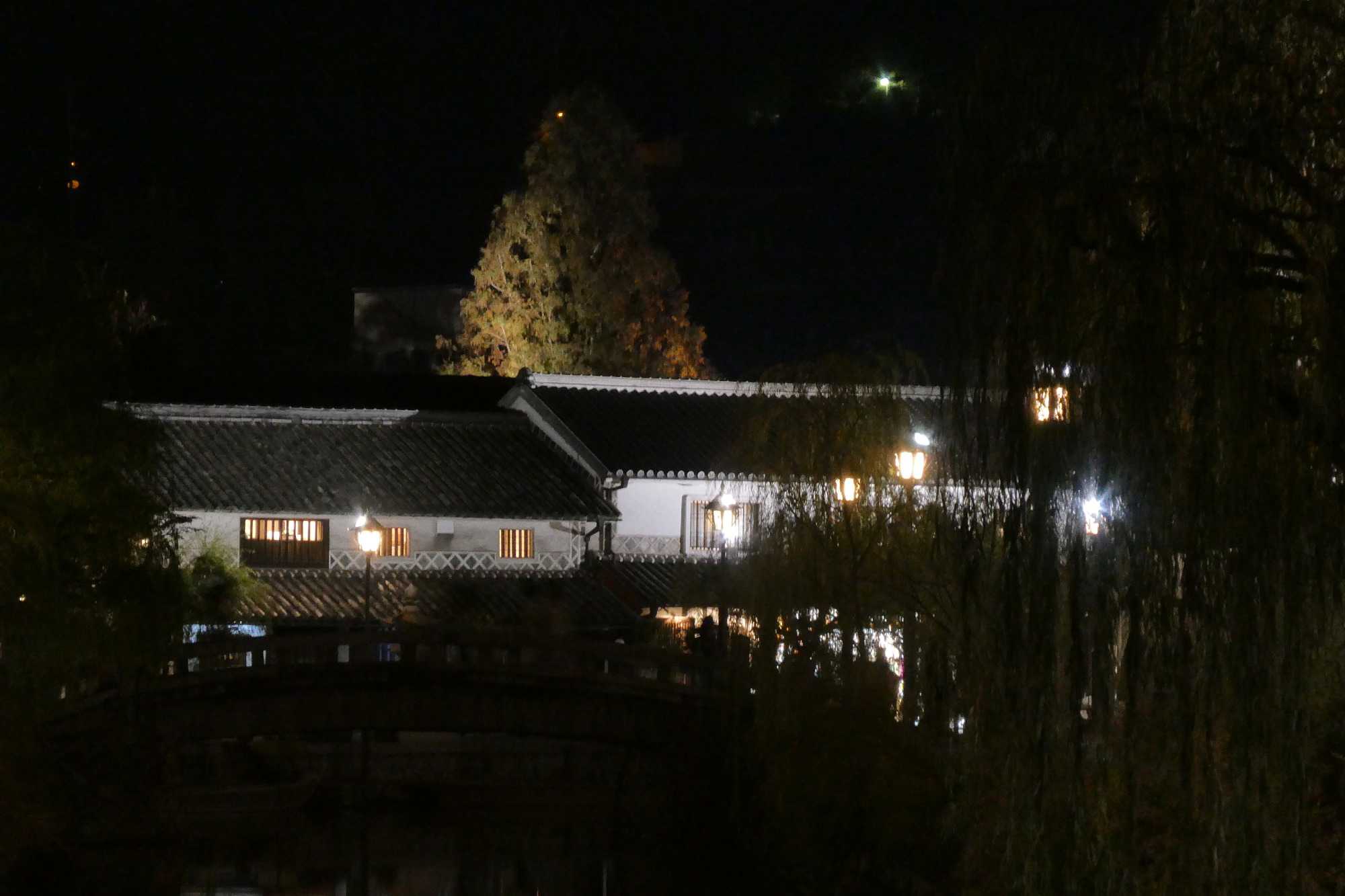 Suite à autre excellent dîner, nous sommes parti vers la très romantique petite ville de Kurashiki. C’est certainement mon cœur d’italien qui a décidé de mettre cette ville sur l’itinéraire. À l'époque seigneuriale, c'était un port actif pour le commerce du riz et plusieurs vieux entrepôts à riz témoignent de cette époque. Une atmosphère des temps anciens et de nombreux musées font le charme de la ville. Nous visitons le quartier Bikan où l'on retrouve de pittoresques canaux remplis de carpes paresseuses et des cygnes sous de magnifiques saules pleureurs et d’érables flamboyants. Les massifs entrepôts à riz datant du 17e siècle ont été dédiés aux textiles au 19e siècle. Aujourd'hui, ils sont convertis en musées ou boutiques. Promenade plus qu'agréable en soirée dans ce vieux quartier romantique. Le souper libre s’est rapidement retourné vers une soirée plus que bien arrosée de bons vins italiens…question de demeurer sur le même sentiment, bien sûr !