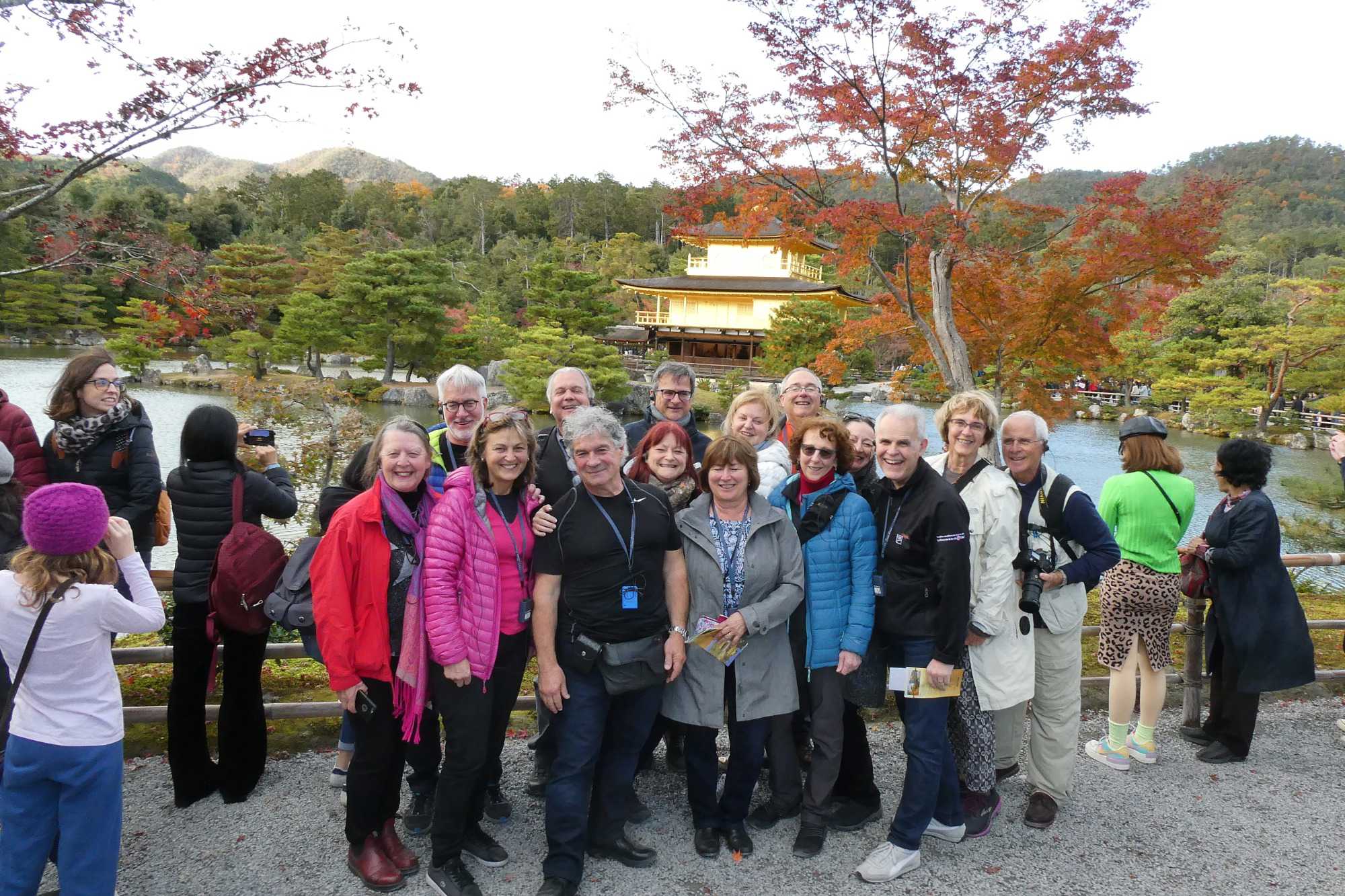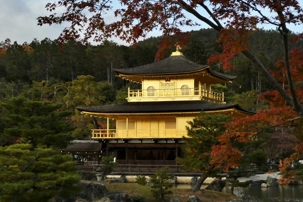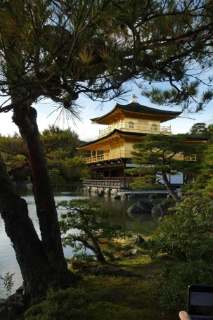 Suite à un autre excellent dîner, nous nous dirigeons maintenant vers le non moins célèbre Kinkakuji, le pavillon d’or. L’heure de la visite est judicieusement sélectionnée, bien sûr. Le pavillon affiche parfaitement son recouvrement de feuilles d’or et sa réflection sur l’étang double l’impact. On comprend facilement pourquoi ce site du 12ème siècle est classé UNESCO.