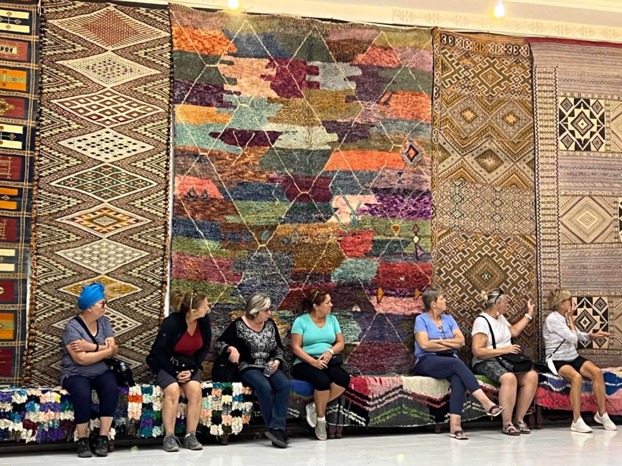 De nouveau à Ouarzazate petit incursion dans une atelier de tissage de tapis pas pour acheter des tapis mais pour voir le travail et connaître l'origine de ceux ci c'est intéresant de savoir mais on ne rapporte pas de tapis c'est beaucoup trop lour dans nos bagages ,