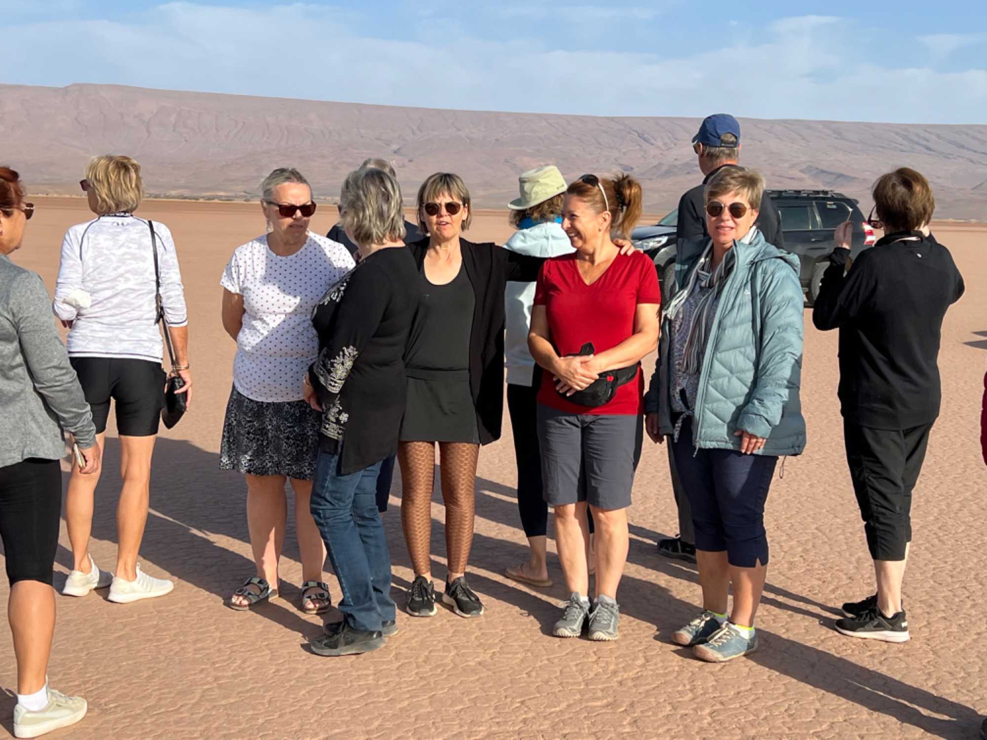 Ou nous avons fait quelques arrêts pour admirer et se reposer un peu nous arrêtons dans le lac asséché ou j'ai l'idée de faire une vidéo sur la chanson on va s'aimé qui est notre chanson depuis le début avec notre guide Saïd quel plaisir tous le monde a participer nous avons chantés et dansés .