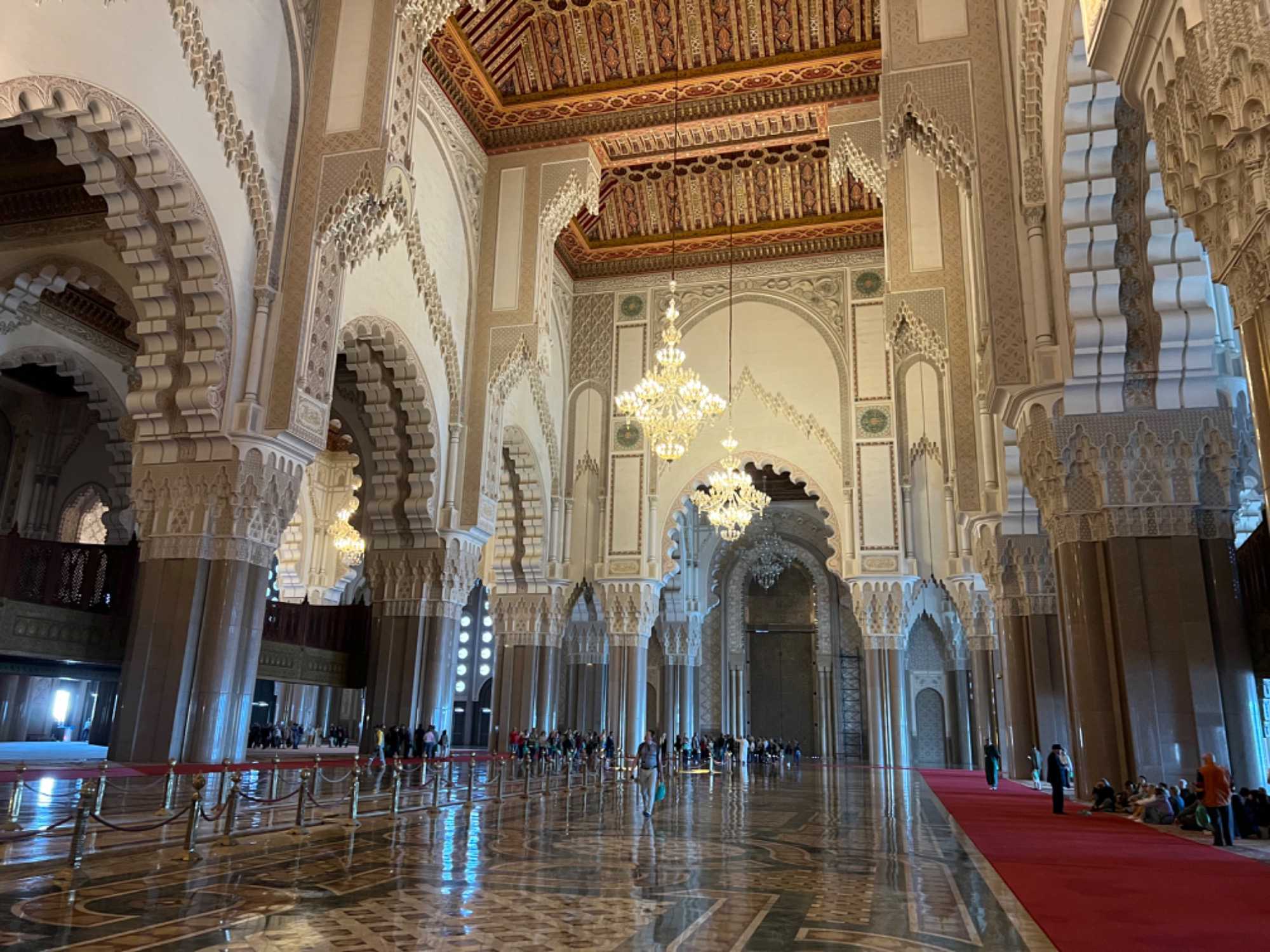 Après le petit déjeuner nous partons pour faire la visite intérieure de la mosquée Hassan II que nous n’avons pas pu faire hier, comme ça vaut le détour, tous étaient bien contents d'avoir fait cette visite de plus c'est la seule mosquée que les non musulmans peuvent visiter au Maroc.