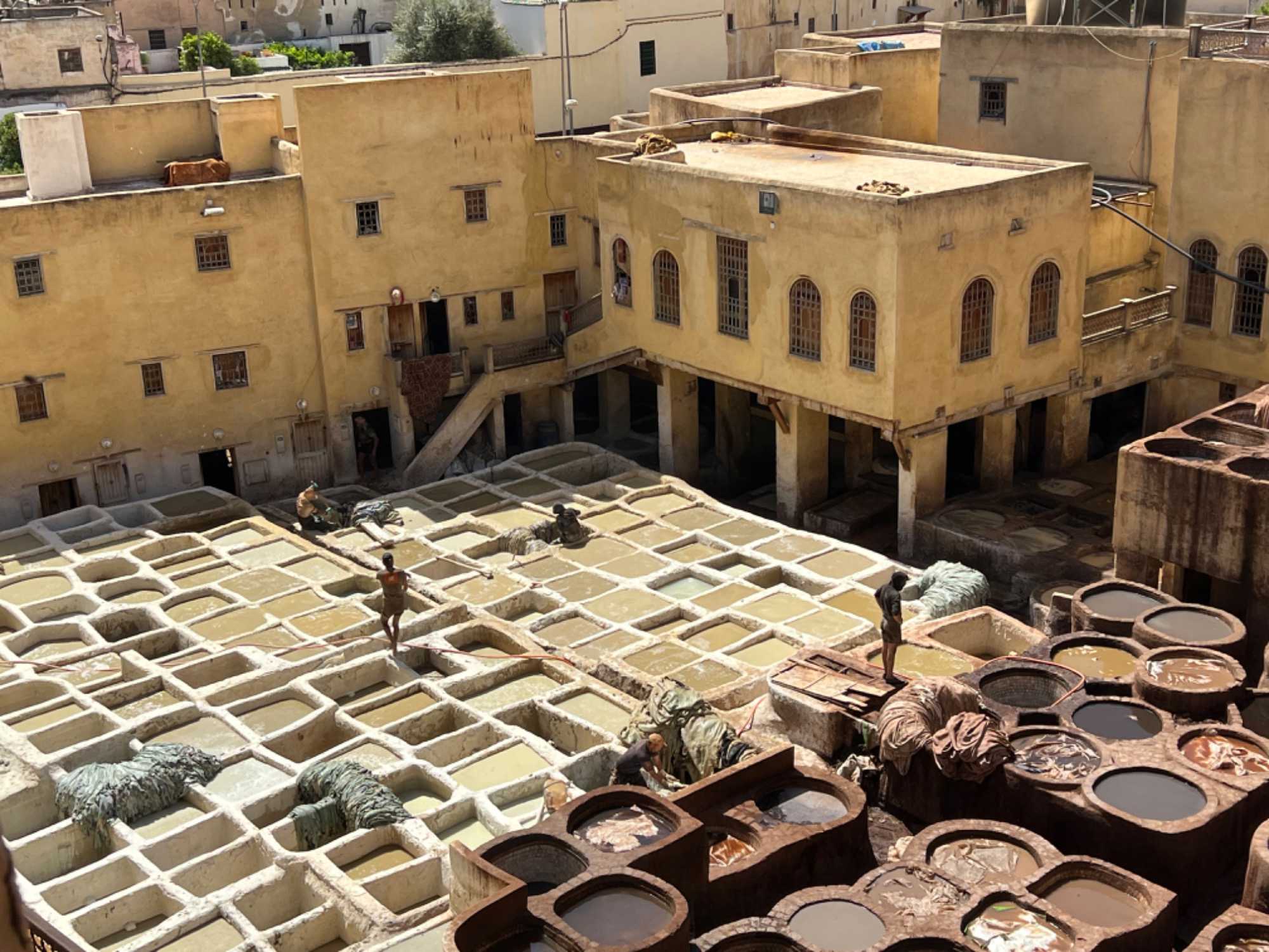 Nous visitons la médersa Attarine (ancienne école coranique), construite entre 1323 et 1325 sous le règne du sultan mérinide Abou Saïd Othman de même que Chouara, le célèbre quartier de la tannerie, dont certaines sont établies depuis le moyen âge, c'est un des endroits les plus spectaculaires de la médina. Ce fut une belle découverte pour mes voyageurs, c'est difficile de vous décrire cet endroit, il faut vraiment faire cette expérience.