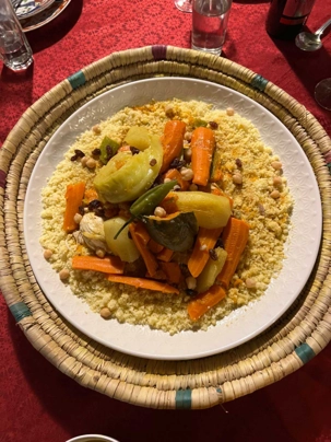 Ce midi nous mangeons dans un quartier européen -dans un très bon restaurant- les portions sont plus que généreuses et nous avons droit, comme dessert, au nougat glacé du Maroc. Ça c'est mon dessert favori, c'est très bon.
