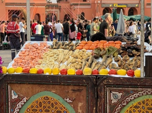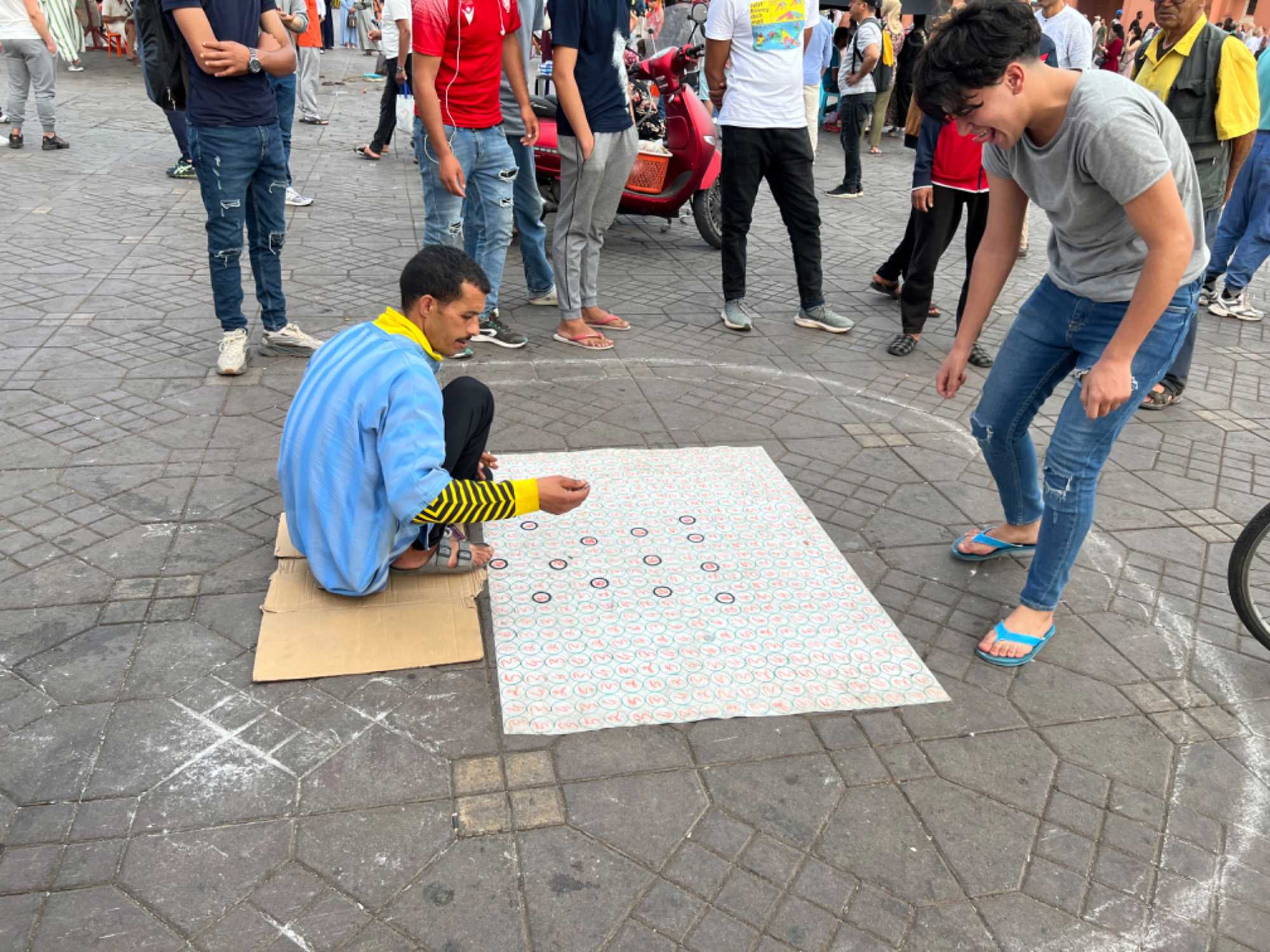Puis petit passage sur la célèbre place Djemâa El Fna afin de voir comment ça se passe le jour. Nous marchons vers l'herboriste (pharmacie de produits naturels) mais ne vous inquiétez pas, personne de malade.