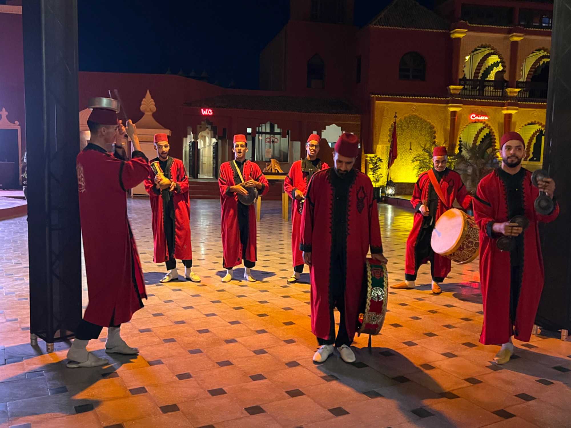Nous retournons sur la célèbre place Djemâa El Fna pour contempler l’animation le soir, c’est tellement festif que nous ne savons plus où regarder avec, notamment, l’installation des restaurants mobiles de la place. C’est vraiment à voir et je vous le dis, il faut le voir pour le croire, photos à l’appui, c’est vraiment amusant et de toute beauté. Il y a de tout, pour tous les goûts! Il y a une foule incroyable! Rien à voir avec le jour. C’est à croire que tout Marrakech est là : restos, musique, danseurs etc.