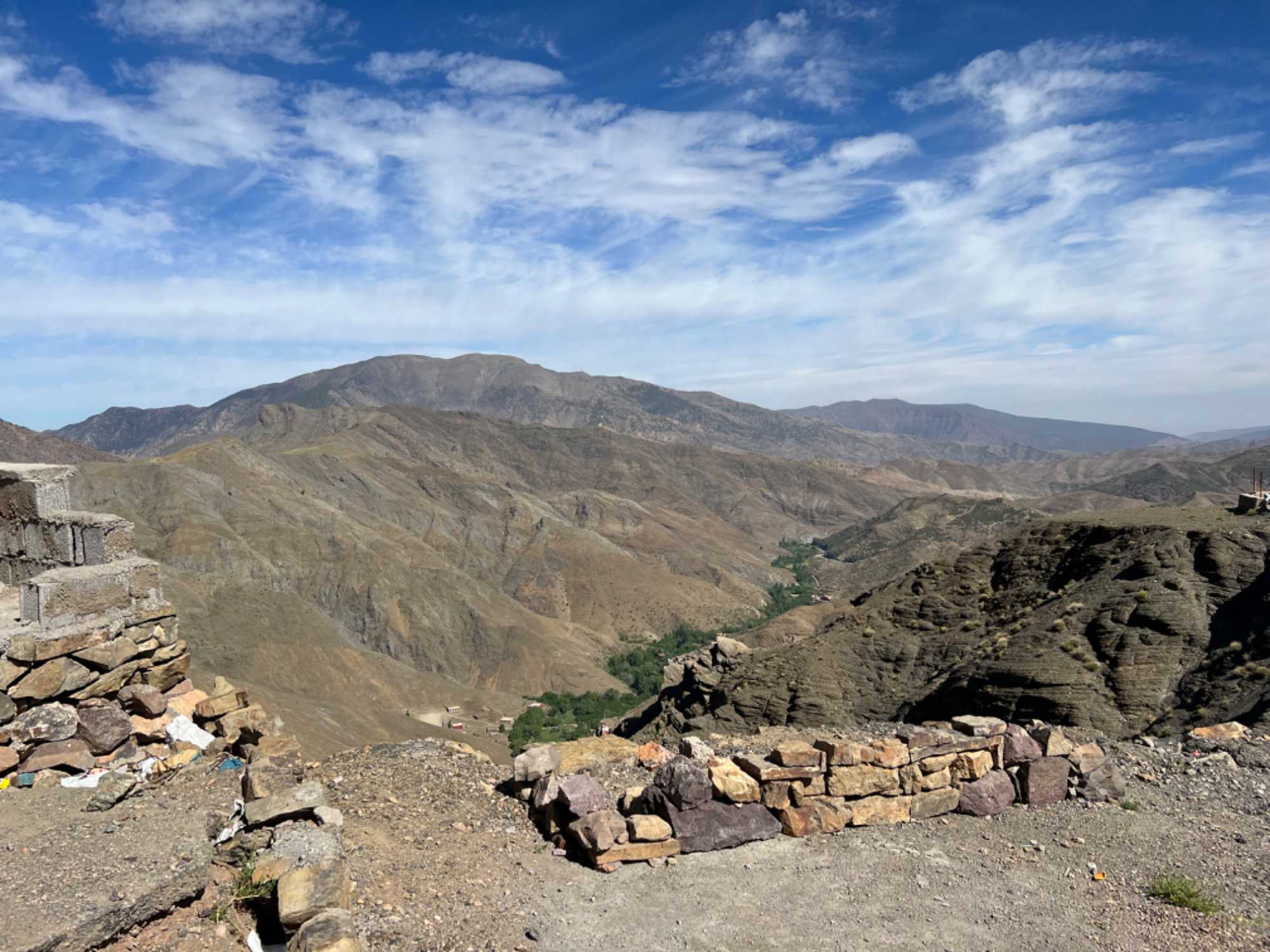 Tout au long de notre route on voit des petits villages, nous passons par le col de Tizine Tichka, le plus haut col du Maroc, avec ses 2260 mètres (7 414 pieds). Je vous dis que c’est haut, il ne faut pas avoir le vertige.