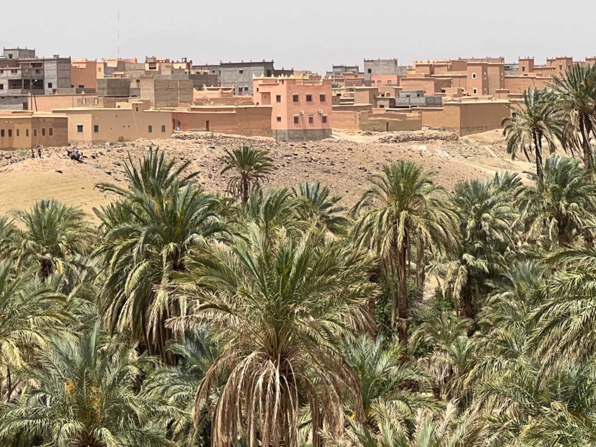 Ici c'est désertique et c'est la sécheresse, le paysage est splendide entre kasbahs et les palmerais.