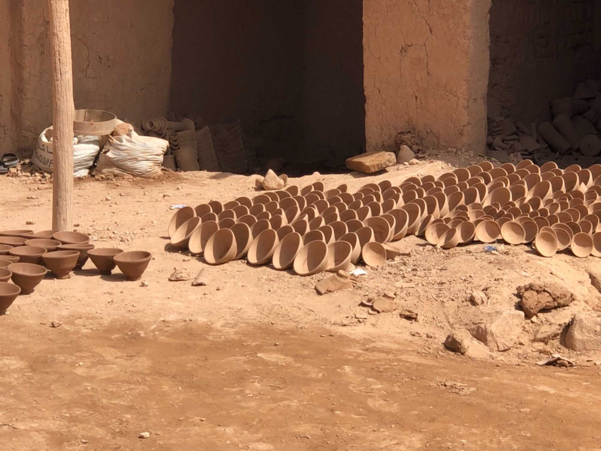 On passe par les petites villages on voit l’arrière pays c’est toujours agréable de voir la vraie vie. Sur notre route il y a une atelier de poterie un peu artisanal, rien à voir avec ce qu’on a vu. C’est une atelier coopérative de poteries vertes comme on en voit partout au Maroc.