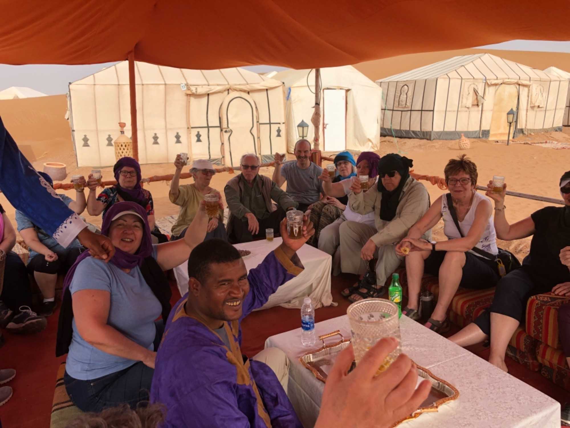 Dès notre arrivée, on est très bien accueillis comme toujours. Nous avons les bivouacs de luxe. Notre voyage est toujours une très belle réussite et on le doit à Ahmed et son équipe de Visite Maroc avec qui je travaille depuis toujours. Avec eux comme parternaires, on est certaines de faire un superbe voyage!