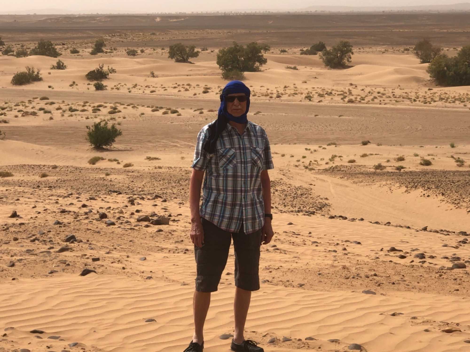 Il fait beau et chaud, tout le monde est heureux et a hâte de voir le désert du Sahara. Mais on doit passer les dunes Lerglihoudi. On dîne dans un oasis, c’est notre premier repas dans le désert. Comme toujours c’est très bon. On poursuit notre route vers les plus grandes dunes sablonneuses du Maroc, le désert de Chegaga: la cerise sur le Sundae!