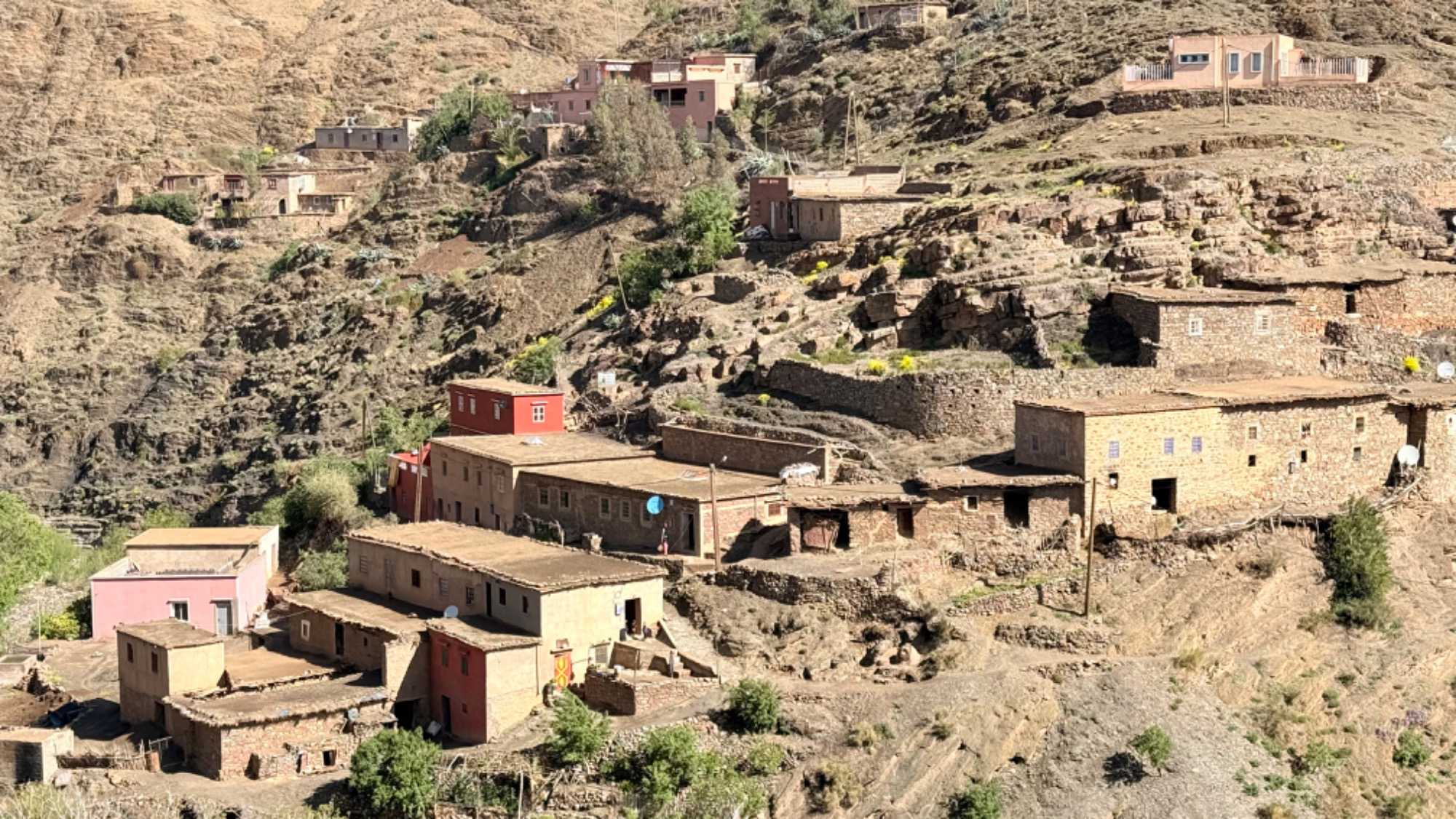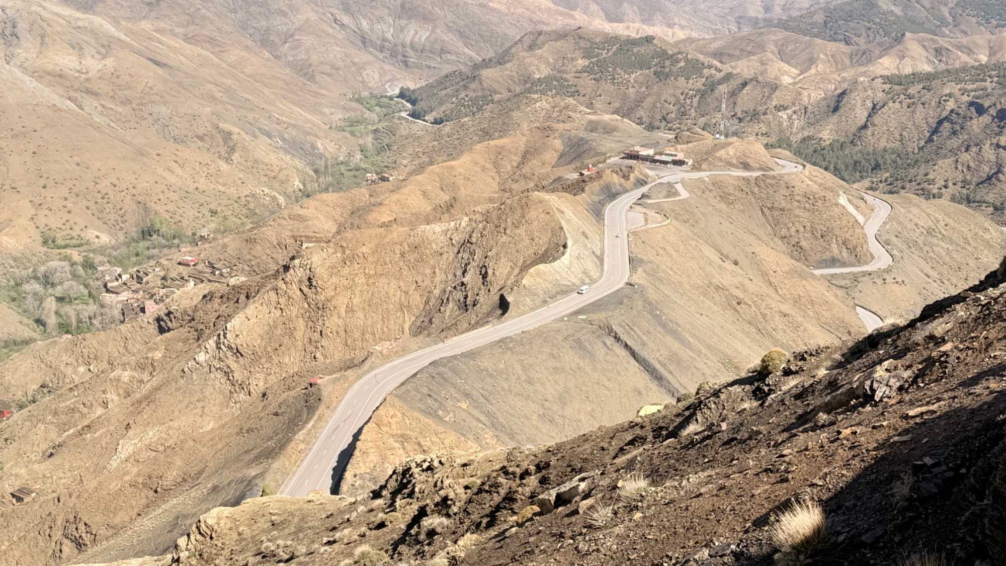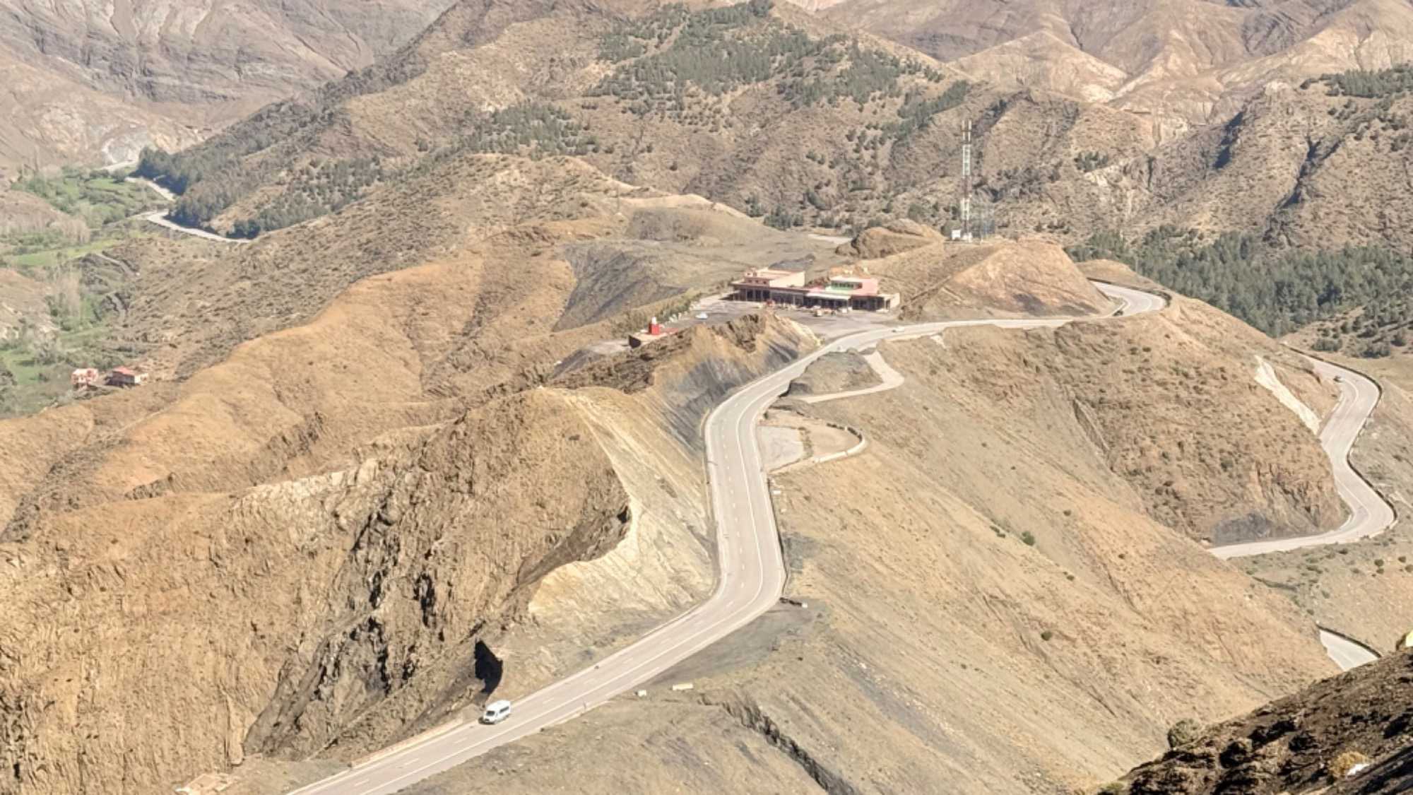 Malgré la pluie d’hier et le ciel couvert d’aujourd’hui, la bonne humeur est au rendez-vous et ça va bien, surtout avec une température de 22 degrés; pas de risque de coup de chaleur, comme disent les Marocains. Tout au long de notre parcours, on voit de jolis petits villages avant de passer par le col de Tizi N Tichka, le plus haut col du Maroc à 2 260 mètres d’altitude, situé entre Marrakech et Ouarzazate. Je vous garantis que c’est suffisamment haut pour avoir le vertige. Ce col sépare deux massifs montagneux différents et le coup d’œil est fabuleux! D’un côté, il y a le massif du M’Goun, un massif aux formes douces; de l’autre, le massif Toubkal qui est très alpin avec de nombreuses stations de sport d’hiver.