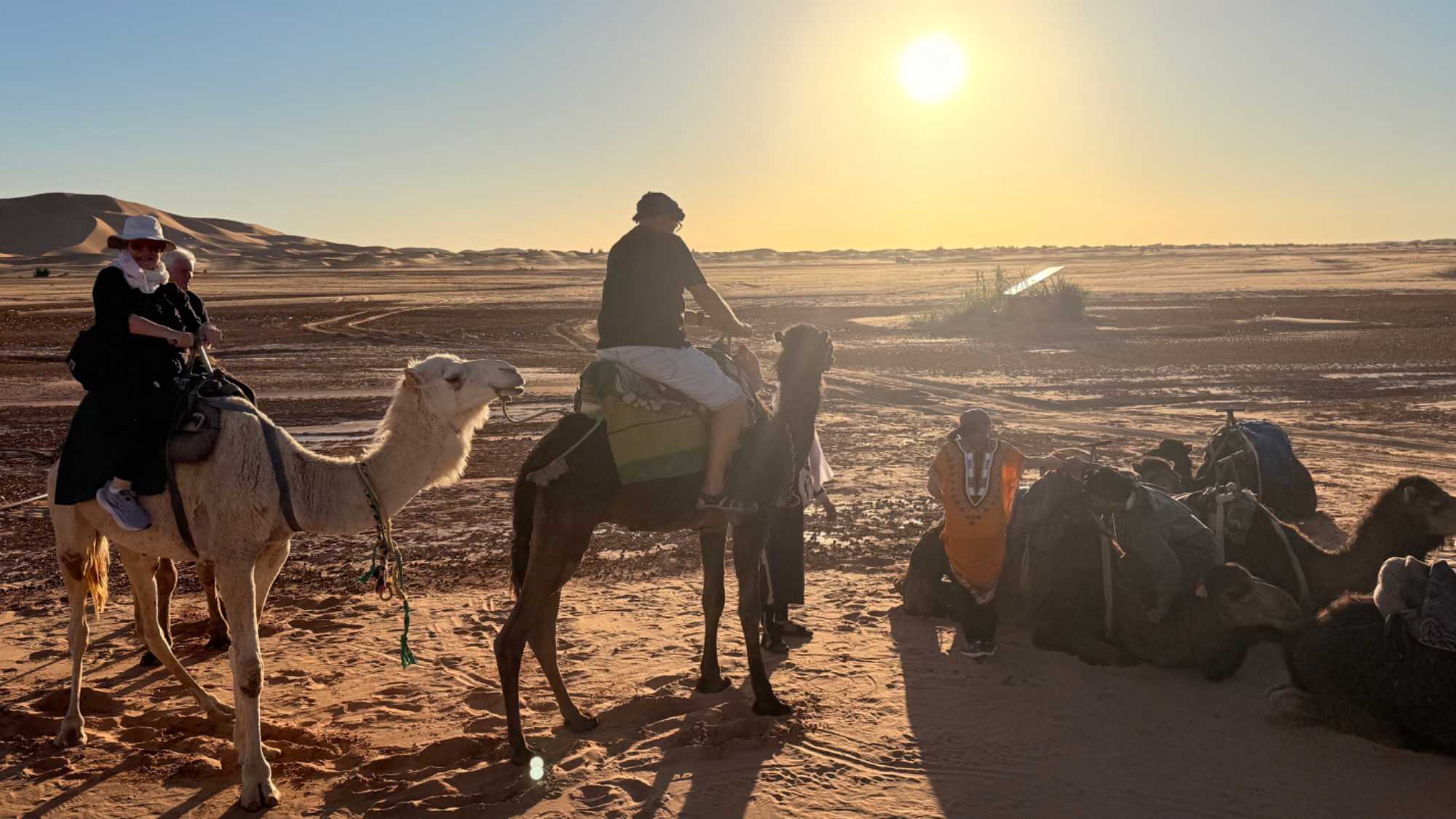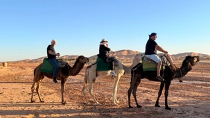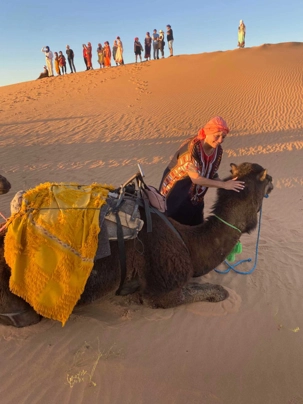 Ensuite, nous reprenons notre chemin pour arriver à nos bivouacs où l’on nous attend pour une balade en dromadaires afin d’aller voir le coucher de soleil. Je n’ai plus de mots pour vous partager ces moments magiques. Tous ont grandement apprécié cette expérience, ouf! Que du bonheur!