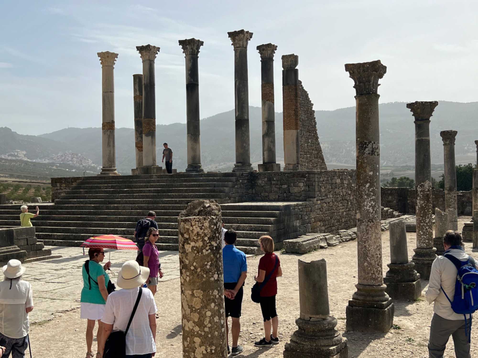 Direction Volubilis, vestige d’une ville construite sur l’ancien site d’une ville punico-berbère – groupe ethnique autochtone d’Afrique du Nord - pour visiter la cité des ruines romaines. Des fouilles entreprises sous le quartier sud de la ville pourraient apporter la preuve d’une installation néolithique (âge de pierre).