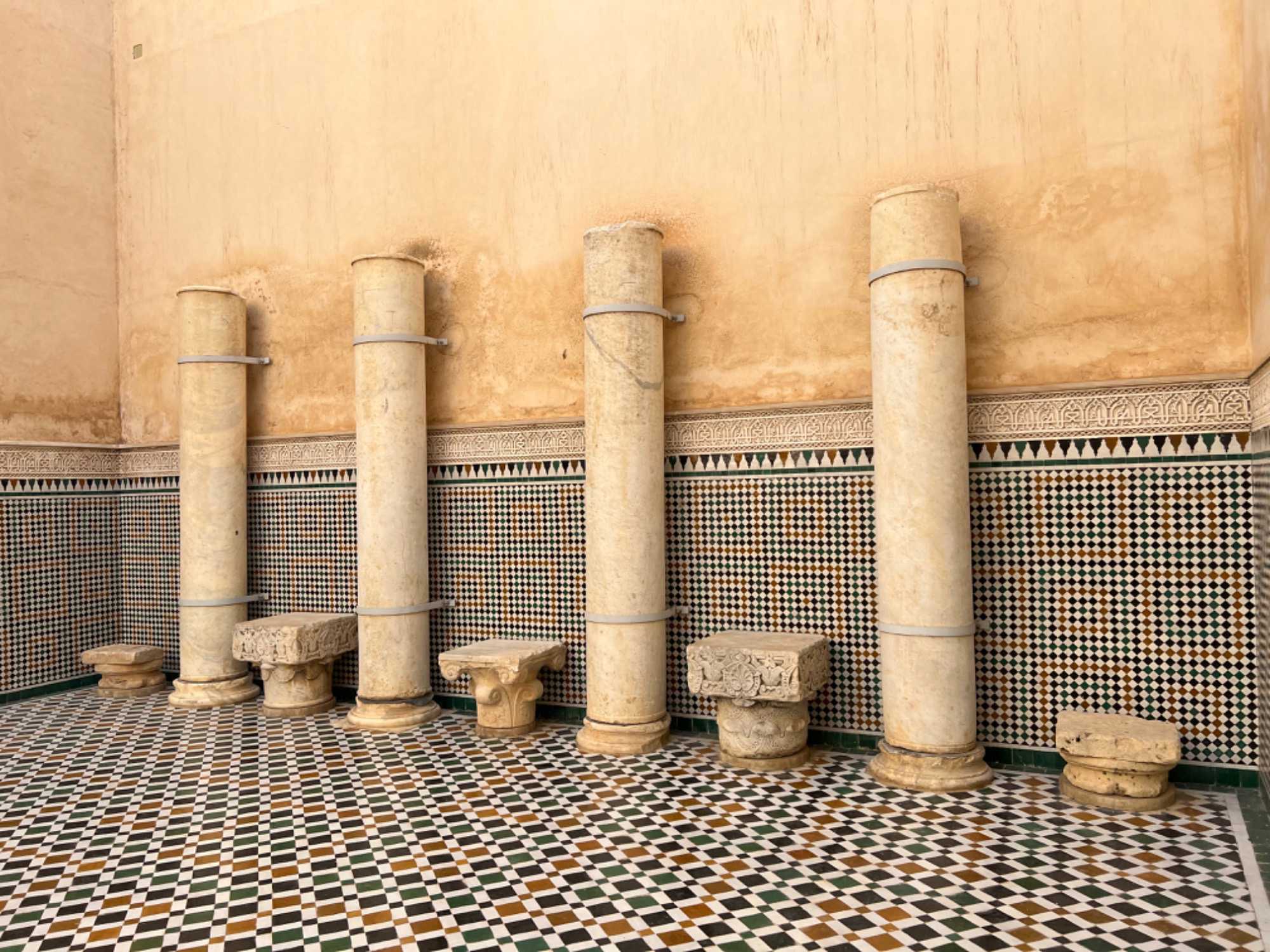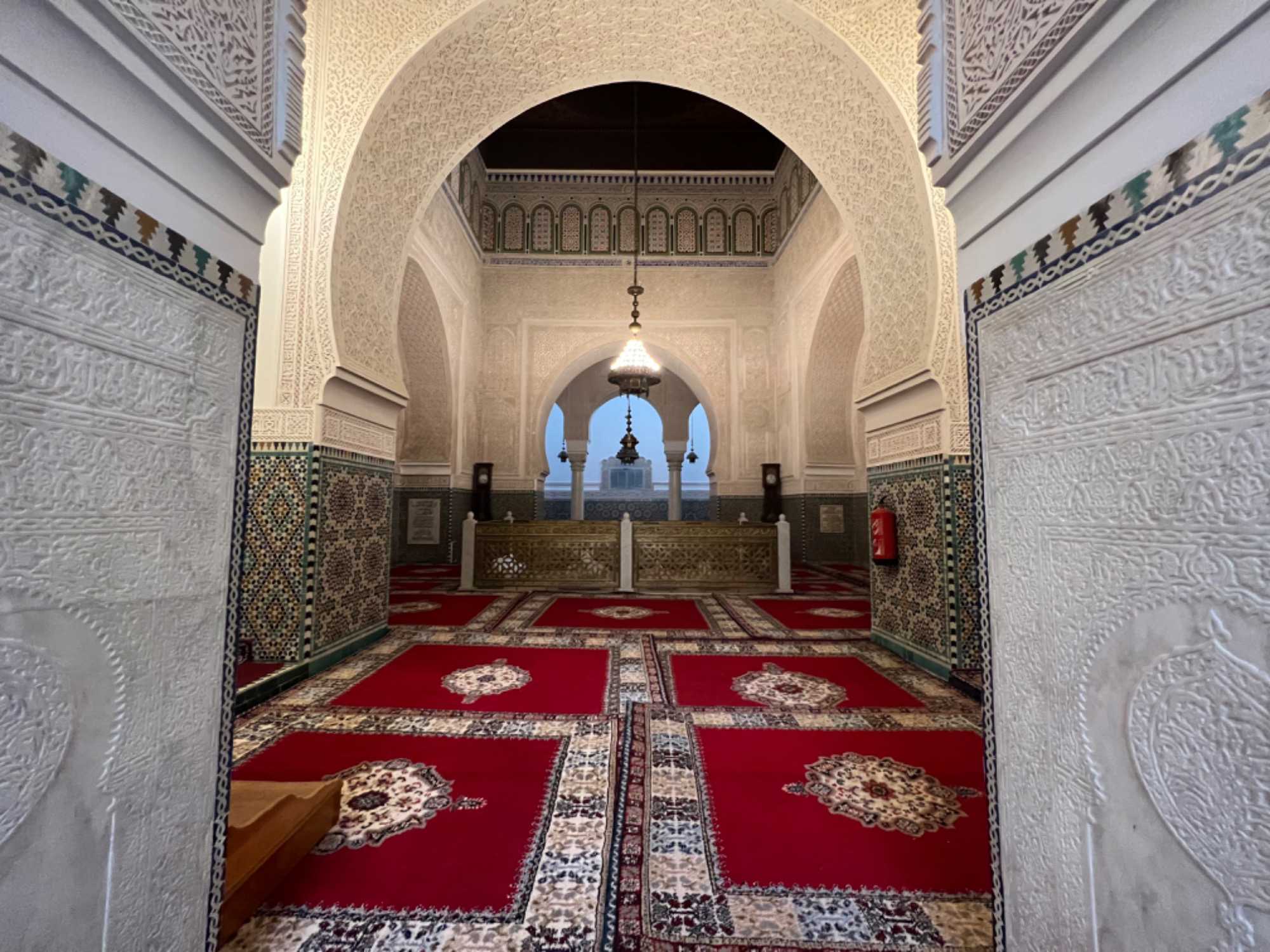 Nous visitons la mosquée de Meknès - je sais je vous ai dit qu'une seule mosquée au Maroc accepte les non musulmans désolée, en fait il y en a deux, - nouvelle découverte pour moi.