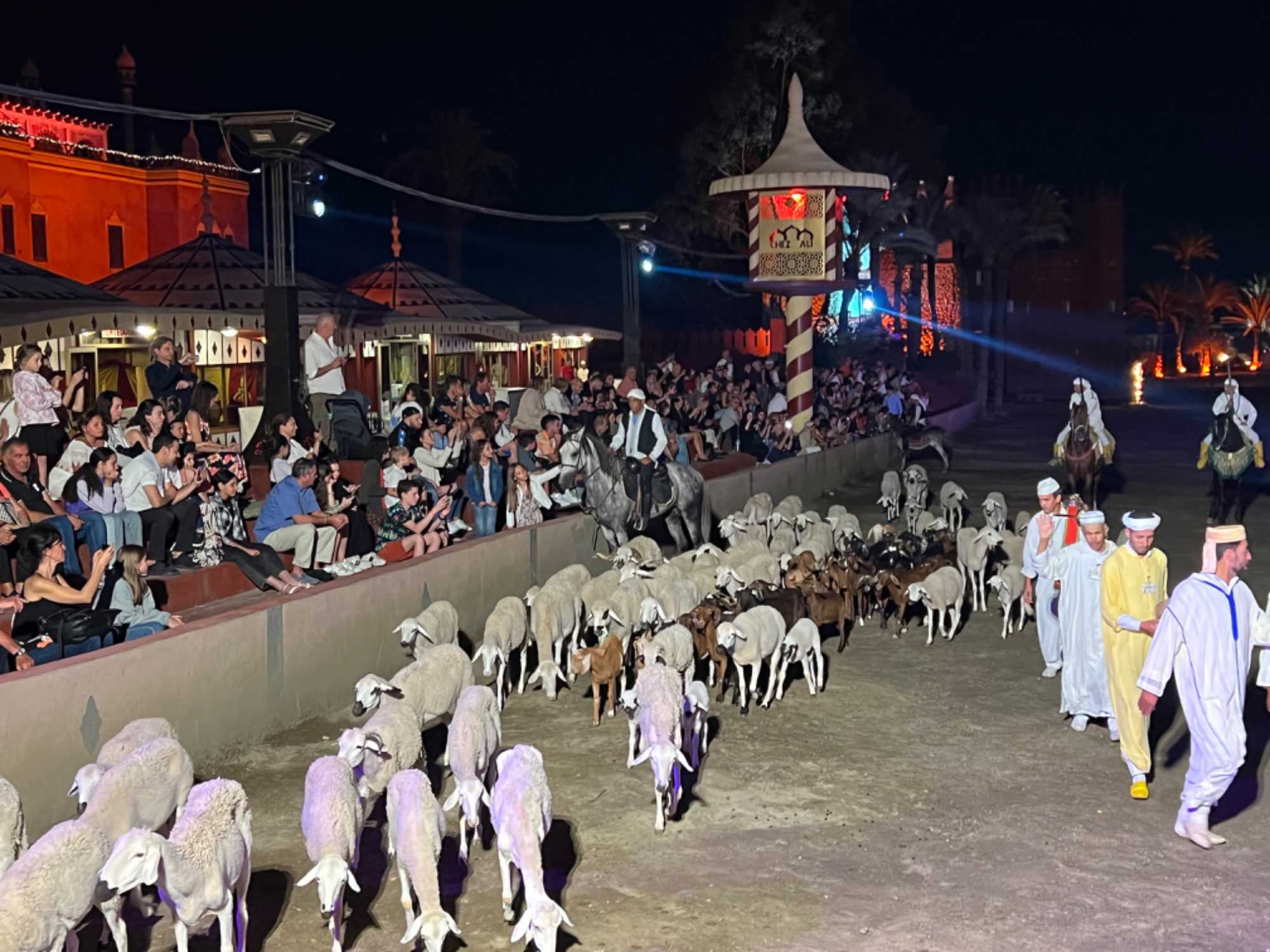 On rentre à l'hôtel, le temps de relaxer un peu, et vers 20 h nous partons pour notre souper spectacle chez Ali. WOW! Quel magnifique spectacle : chevreaux et danseurs. C’est un spectacle haut en couleurs et que dire de notre super repas, très bon!
